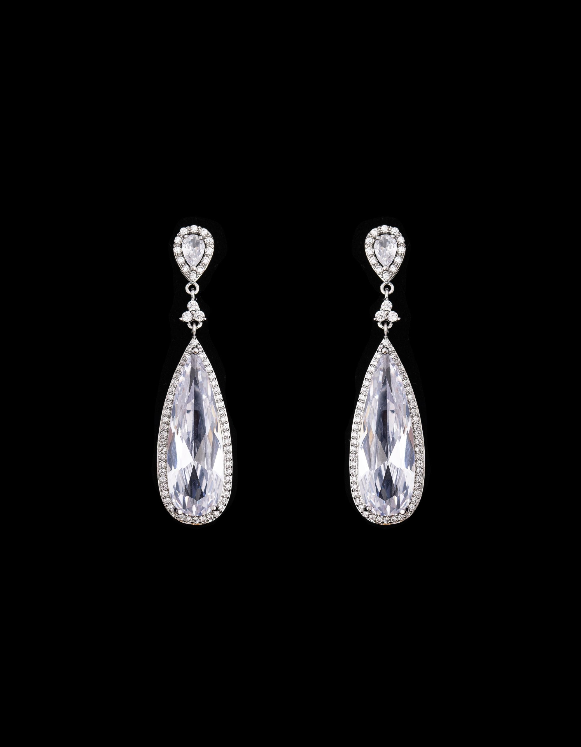 Affirmez votre style avec ces boucles d'oreilles pendante, une pièce luxueuse et intemporelle. Conçues pour sublimer votre allure, elles captent la lumière avec leurs cristaux scintillants, taillés en goutte et entourés d’une délicate rangée de zircons étincelants.