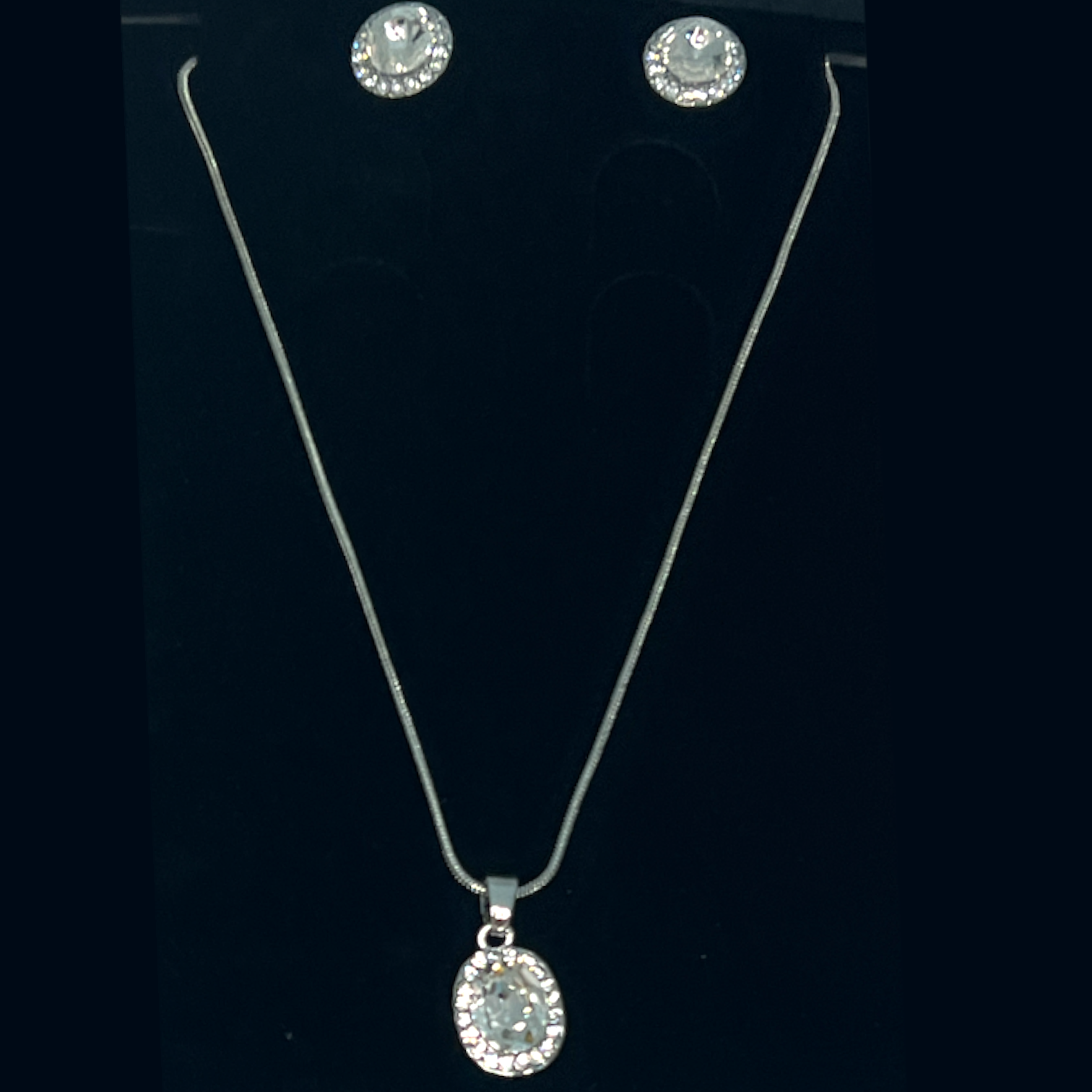 Le Pendentif et boucle d'oreilles est un bijou de haute qualité. Il est composé d'un pendentif en strass argenté pour offrir un style chic et intemporel. Chaque pièce est minutieusement travaillée à la main pour un fini parfait et lisse.