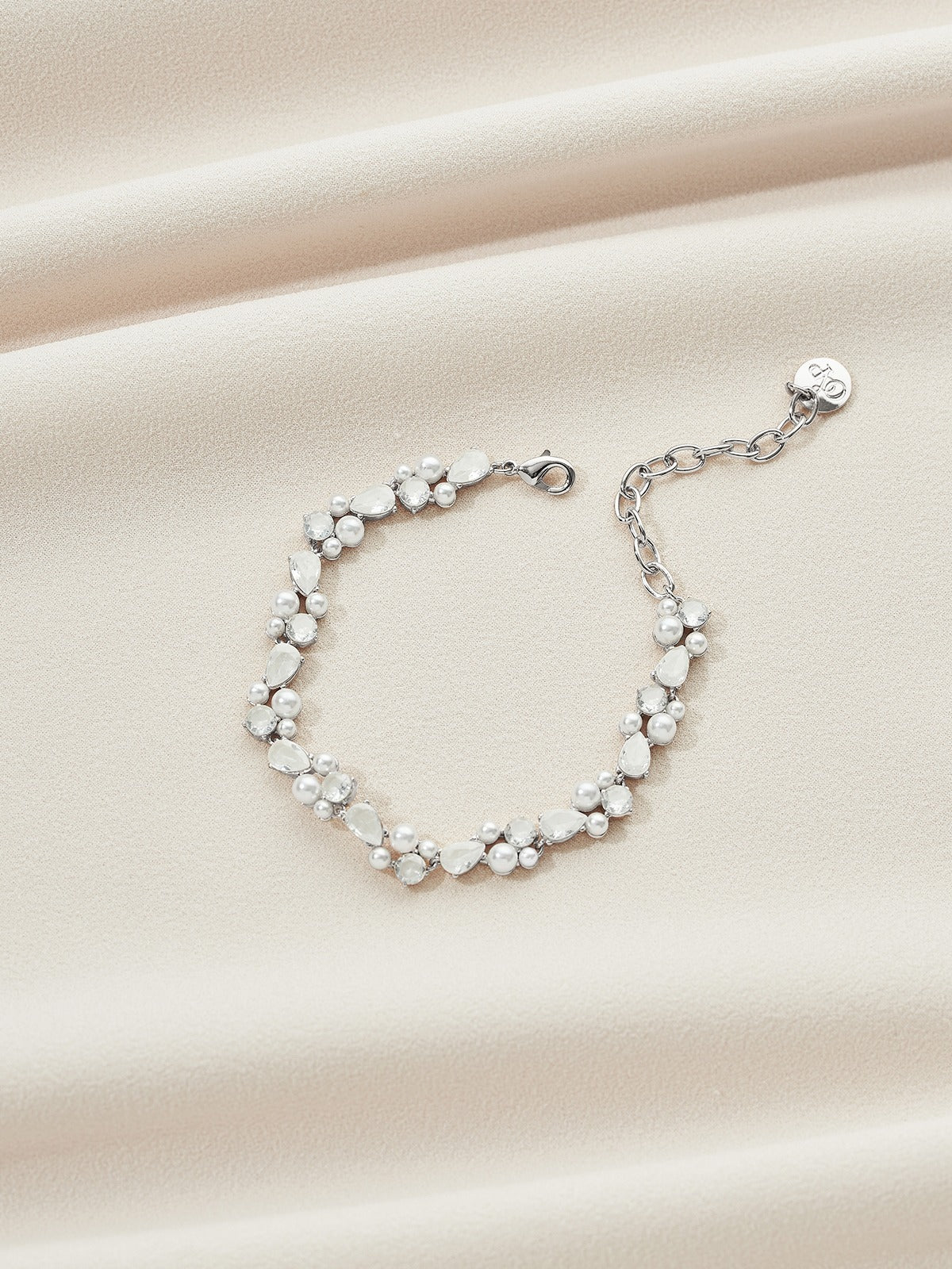Un bracelet luxueux orné de perles et de cristaux. Complétez votre look avec une sophistication sans effort et n'ayez pas peur de le superposer avec d'autres bracelets délicats.
