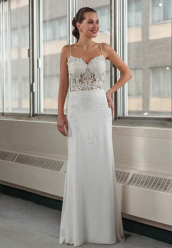 Description: La robe Arianna offre une silhouette de sirène exceptionnellement sensuelle et luxueuse. Sa silhouette fluide est parfaitement complétée par un corsage de dentelle pailletée qui transforme chaque mouvement en une scène de grand ballet. Une tenue qui s'adapte parfaitement à toutes les occasions importantes et qui vous fera briller de mille feux tout au long de votre journée.