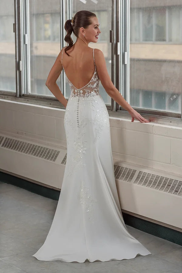 Bretelles de perlages délicate et dos ouvert. |