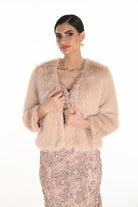 Confectionné dans une fausse fourrure douce à effet soyeux, rehaussée de subtils reflets argentés, il allie chaleur et raffinement. Sa coupe droite légèrement ample offre confort et modernité, tandis que sa longueur mi-hanches permet de l’associer aussi bien à une robe de soirée qu’à un pantalon habillé.