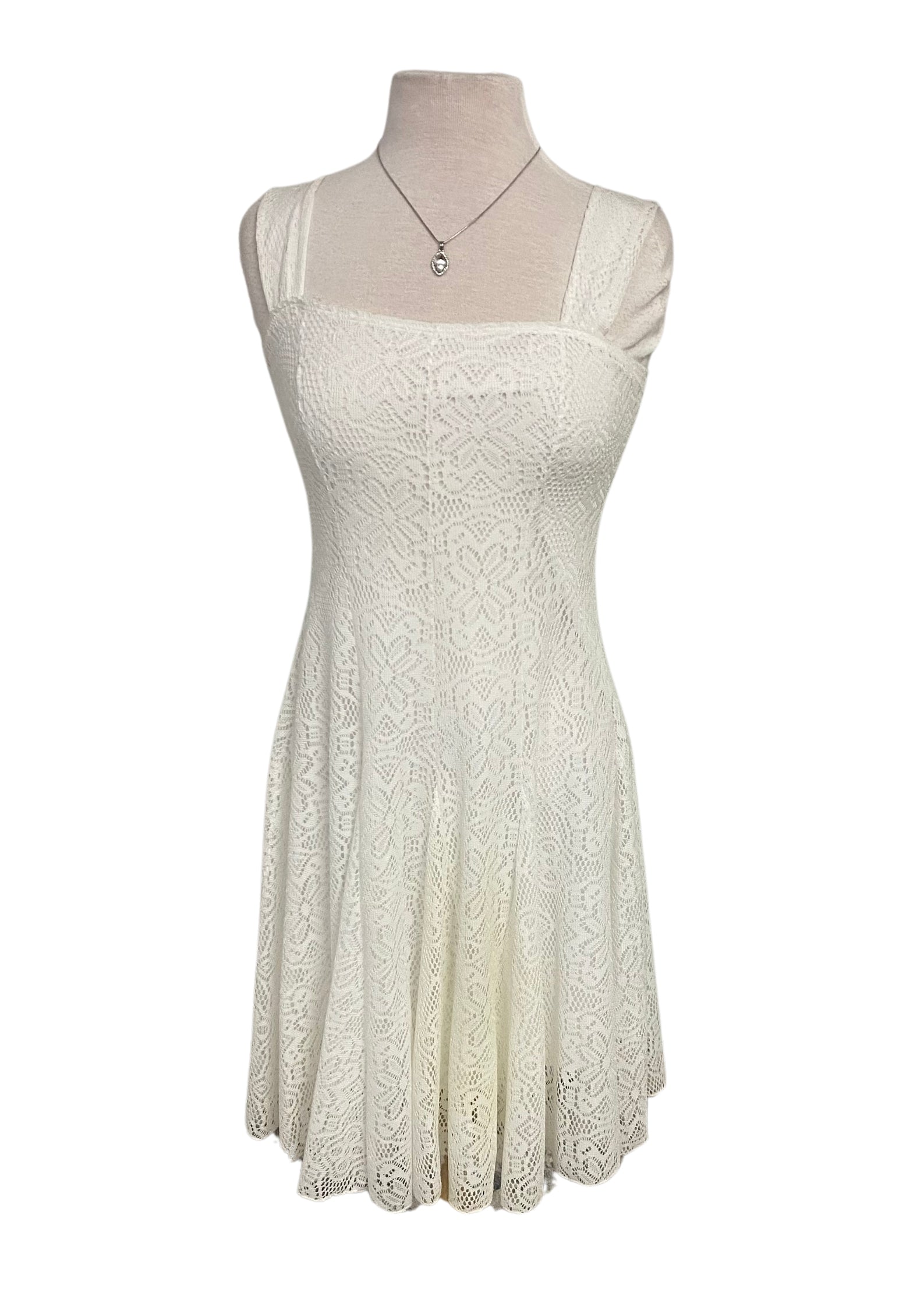Cette robe en tricot léger et dentelle florale est parfaite pour un look estival chic et décontracté. Sa coupe fluide et confortable met en valeur une silhouette naturelle avec une touche féminine et romantique.