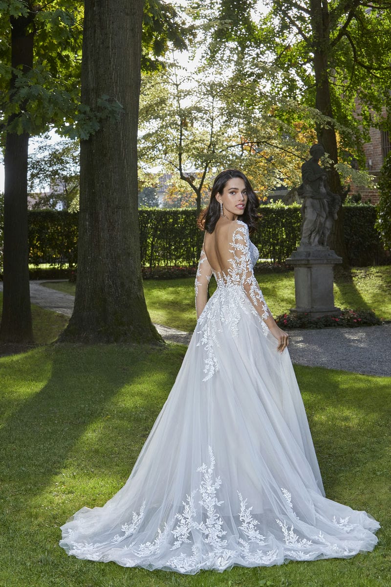 Description: Les détails délicats rencontrent le luxe décadent dans le style de Romane. Des jets de dentelle perlée frappante mettent en valeur le corsage illusion à épaules dénudées avec un dos bas sexy et se transforment en cascade dans une jupe en tulle éthérée.