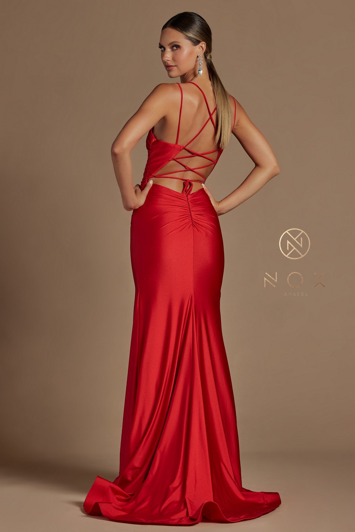 Description: Élégante et chic avec une sensation de légèreté, cette magnifique robe ajustée à encolure dégagée avec bretelles spaghetti est aussi cool que confortable. Un décolleté légèrement dégagé se marie parfaitement avec de fines bretelles, mettant en valeur le visage avec un col large ouvert apportant une touche de texture luxueuse et sans effort avec le détail échancré doux. Cette belle robe sirène orne une fente latérale qui se termine sur toute la longueur. Le dos ouvert est sécurisé par des bretelles entrecroisées.