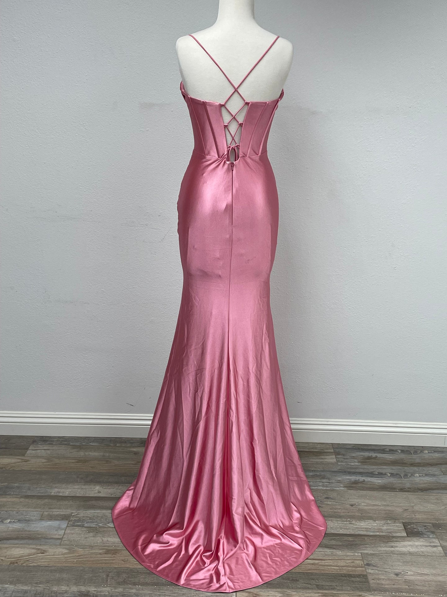Cette robe longue en satin rouge intense est synonyme de glamour et d'élégance. Dotée d’un corset structuré et d’un décolleté drapé, elle met en valeur la silhouette de manière sensuelle. La fente haute ajoute une touche audacieuse, parfaite pour les occasions où chaque détail compte.
