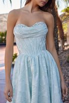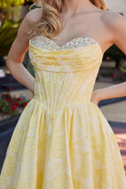 Cette robe longue au style romantique et raffiné séduit par son corsage structuré à décolleté cœur, délicatement rehaussé de perles scintillantes. Confectionnée dans un somptueux tissu jacquard à motif floral, elle offre une texture riche et élégante. La taille marquée s’ouvre sur une jupe ample et fluide qui accompagne chaque mouvement avec grâce. Le dos lacé apporte une touche couture tout en assurant un ajustement parfait. Une robe lumineuse et féminine, idéale pour une allure inoubliable.