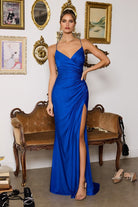 Féminine et irrésistiblement glamour, cette robe longue séduit par sa coupe ajustée et son drapé flatteur à la taille. Son décolleté en V délicat, soutenu par de fines bretelles, met en valeur le haut du corps avec élégance.