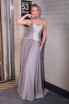 Romantique et majestueuse, cette robe Ladivine allie structure et légèreté dans une silhouette digne des plus belles soirées. Son corsage style corset, orné de délicates perles scintillantes, sculpte la taille et met en valeur le décolleté cœur avec élégance. Les détails raffinés au pourtour du buste et de la taille ajoutent une touche lumineuse et sophistiquée.
