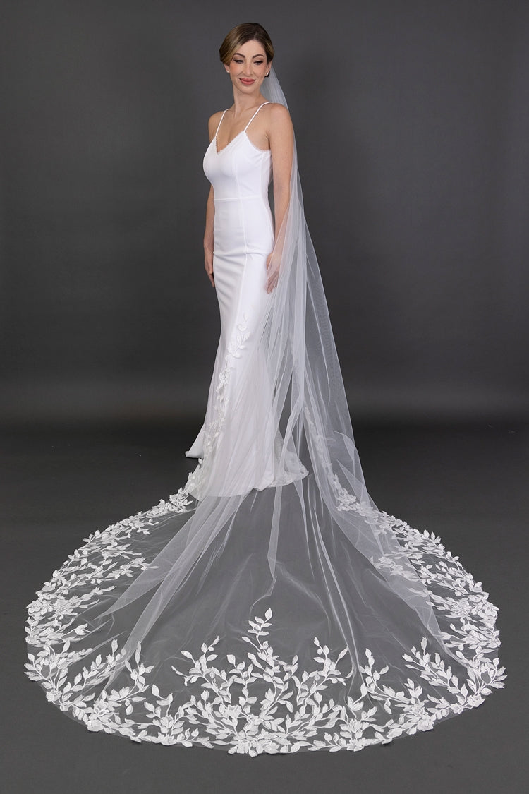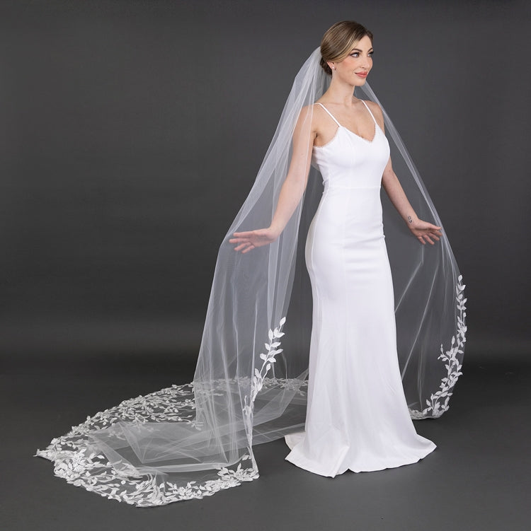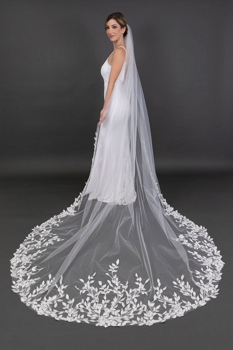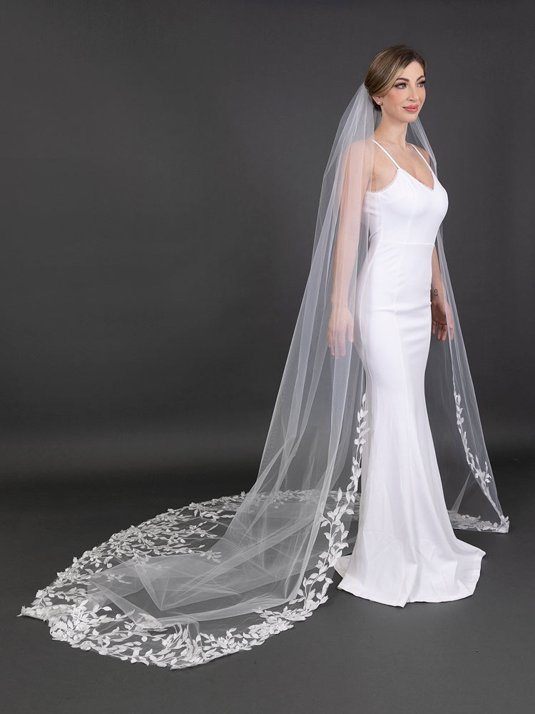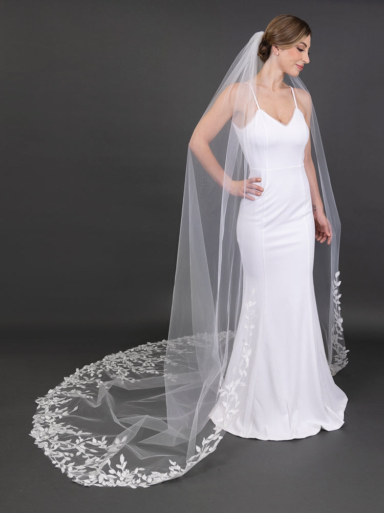 Voile Cathédrale avec appliqués de dentelle scintillante de pétales et de feuilles
