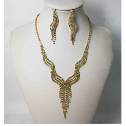 Create an elegant and timeless look with this silver necklace and earring set with rhinestones. The refinement of this pair is ensured by the V-shaped finish and precise details, making the necklace and earrings perfect for an event.