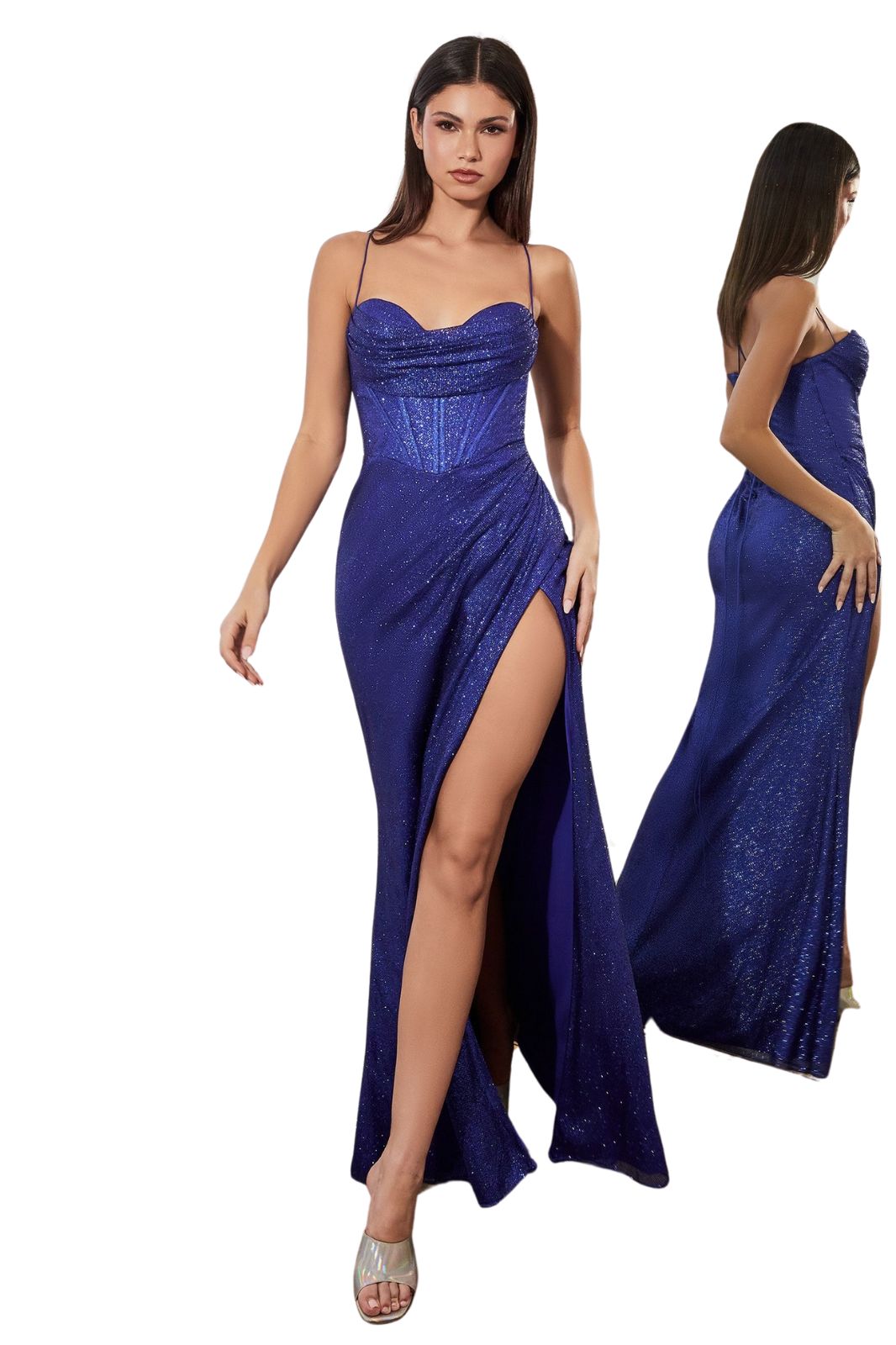 This elegant and daring dress is ideal for shining at the most prestigious events. With its structured and transparent corset, it perfectly hugs the silhouette for a sculpting effect. Its side slit enhances the look with a touch of sensuality and refinement.