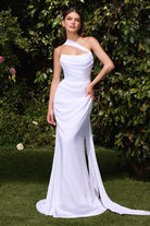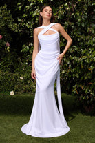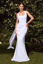 Cette robe longue blanche se caractérise par sa silhouette sirène fluide, son jeu de drapés sophistiqués, et sa polyvalence unique permise par différentes façons de porter le haut grâce aux pans de tissus modulables. Elle offre un look à la fois sensuel et minimaliste, parfait pour un mariage élégant ou en plein air.