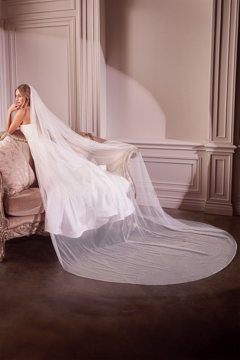 Apportez une touche de romantisme et de raffinement à votre tenue avec ce voile de mariée long en tulle fin, délicatement orné de petites perles cousues à la main. Fluide et aérien, il retombe avec élégance jusqu’au sol, créant une traîne subtile et lumineuse qui sublime chaque mouvement. Sa transparence met en valeur la silhouette et s’accorde parfaitement avec tous les styles de robes de mariée.