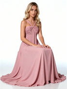 Idéale pour un mariage, un bal, une soirée élégante ou une demoiselle d’honneur, la robe Rosalie 202303 allie simplicité raffinée et élégance intemporelle.