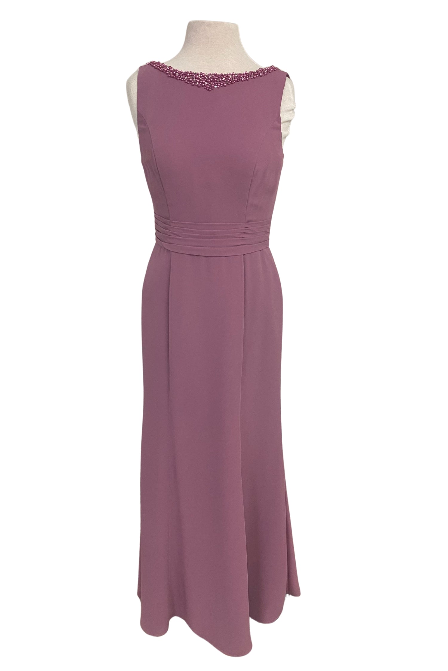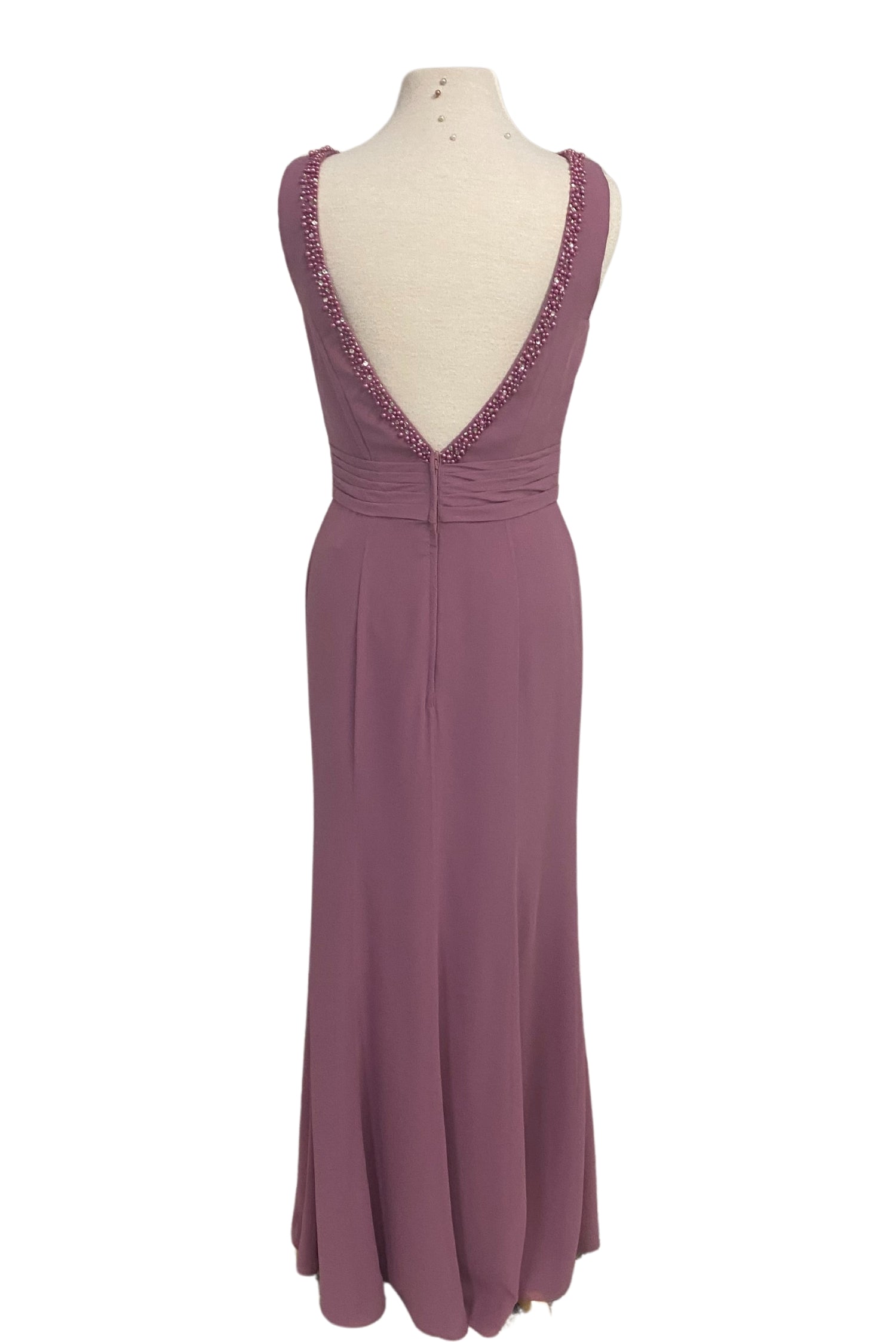 Pair this dress with silver accessories and an updo to accentuate the low-cut back. Sleek heels will complete this polished look perfectly.