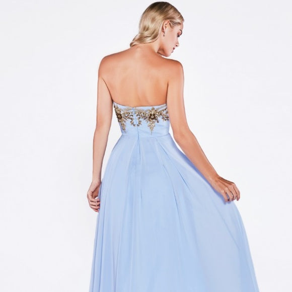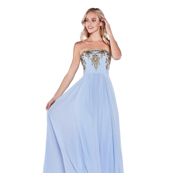Strapless A-line dress with lace bodice and jewels |