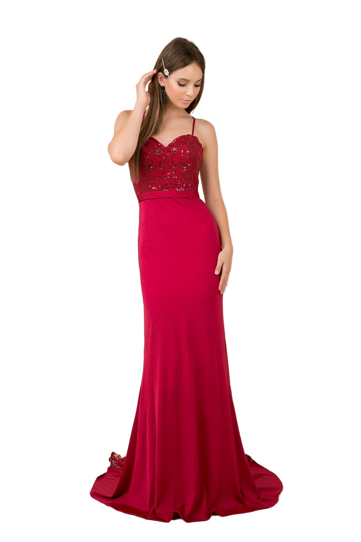 Mermaid Dress with Embroidered Bodice and Spaghetti Straps -