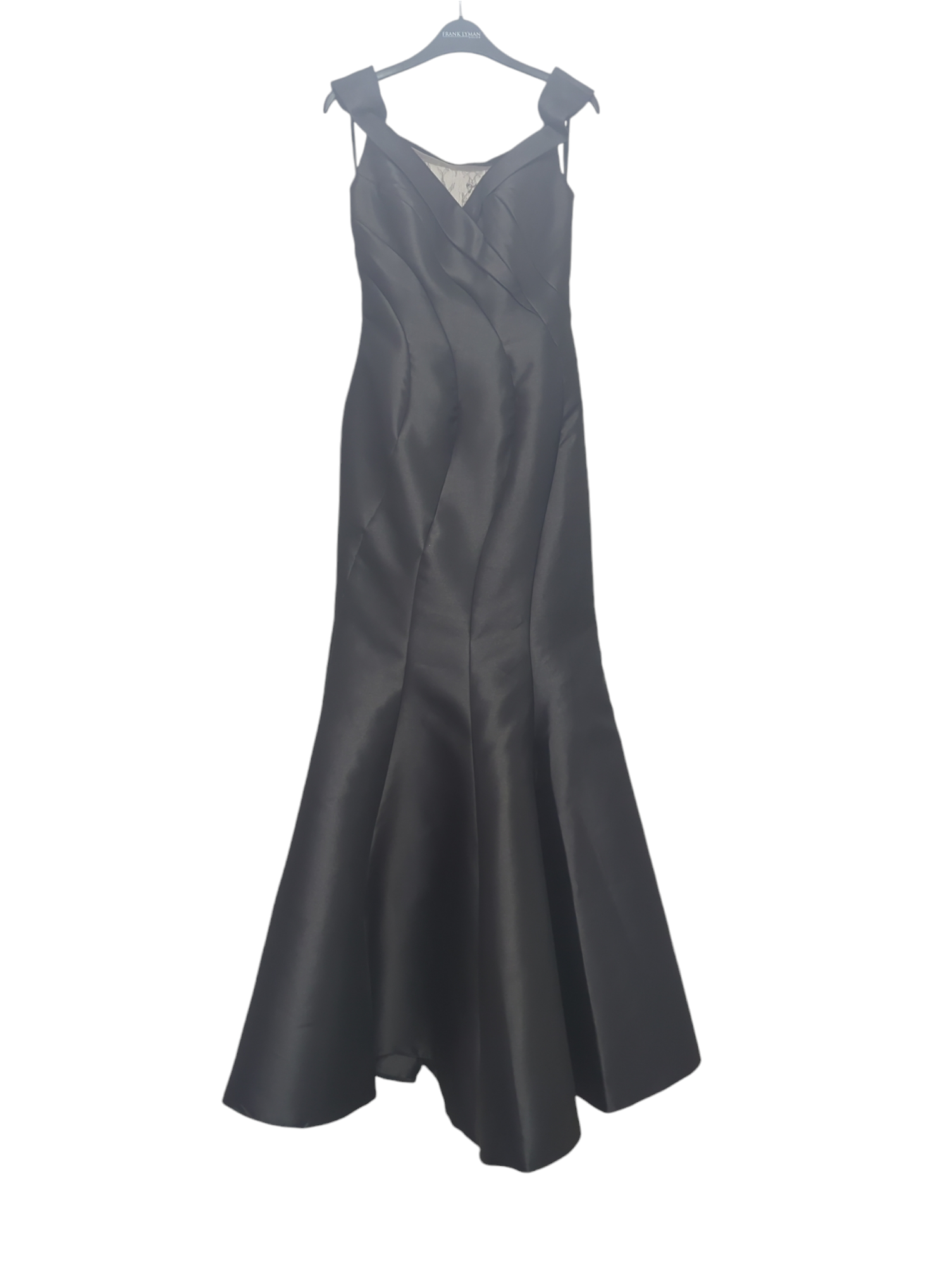 Elegant and sophisticated, the dress embodies grace with its flattering mermaid silhouette and carefully crafted details. Subtle pleats and a sleek design lend a timeless appeal, while the bow-embellished shoulders add a modern, feminine touch. Designed for special occasions, this dress is the perfect choice for making a grand entrance.