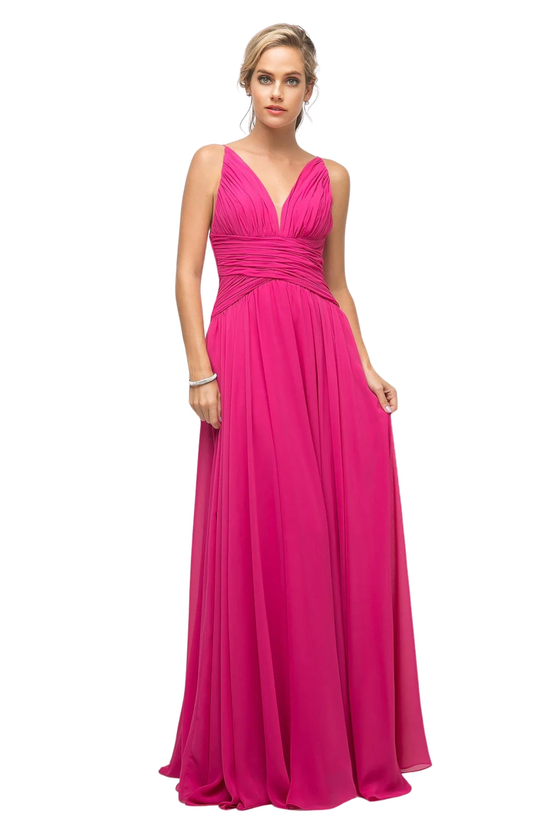Descriptions: Discover our UF295 long dress in fuchsia polyester, with its elegant V-neckline. Perfect for a luxurious evening, this dress will enhance your figure and make you feel like a true fashion icon. Its silky fabric and vibrant hue make it a must-have choice for special occasions.
