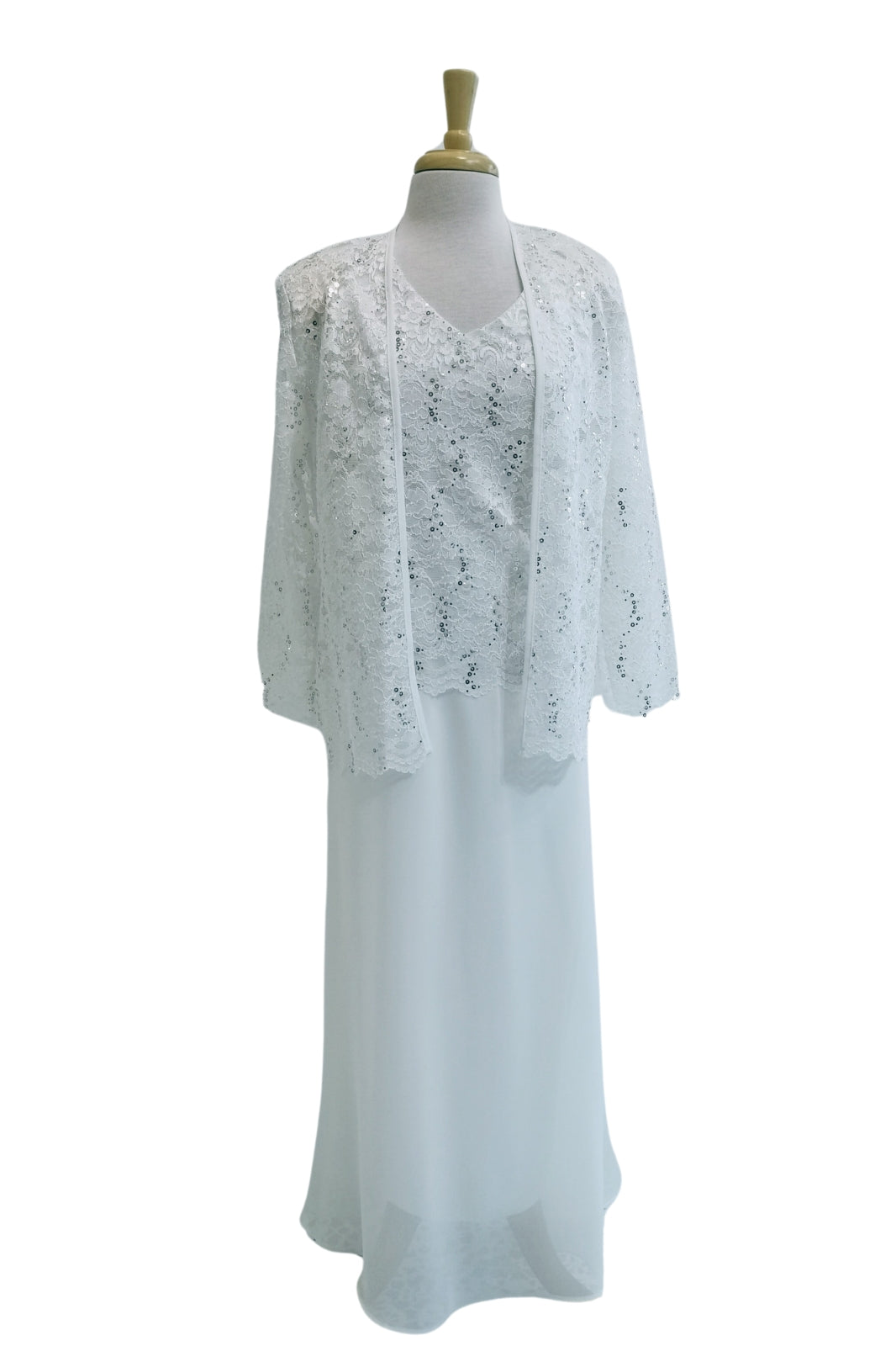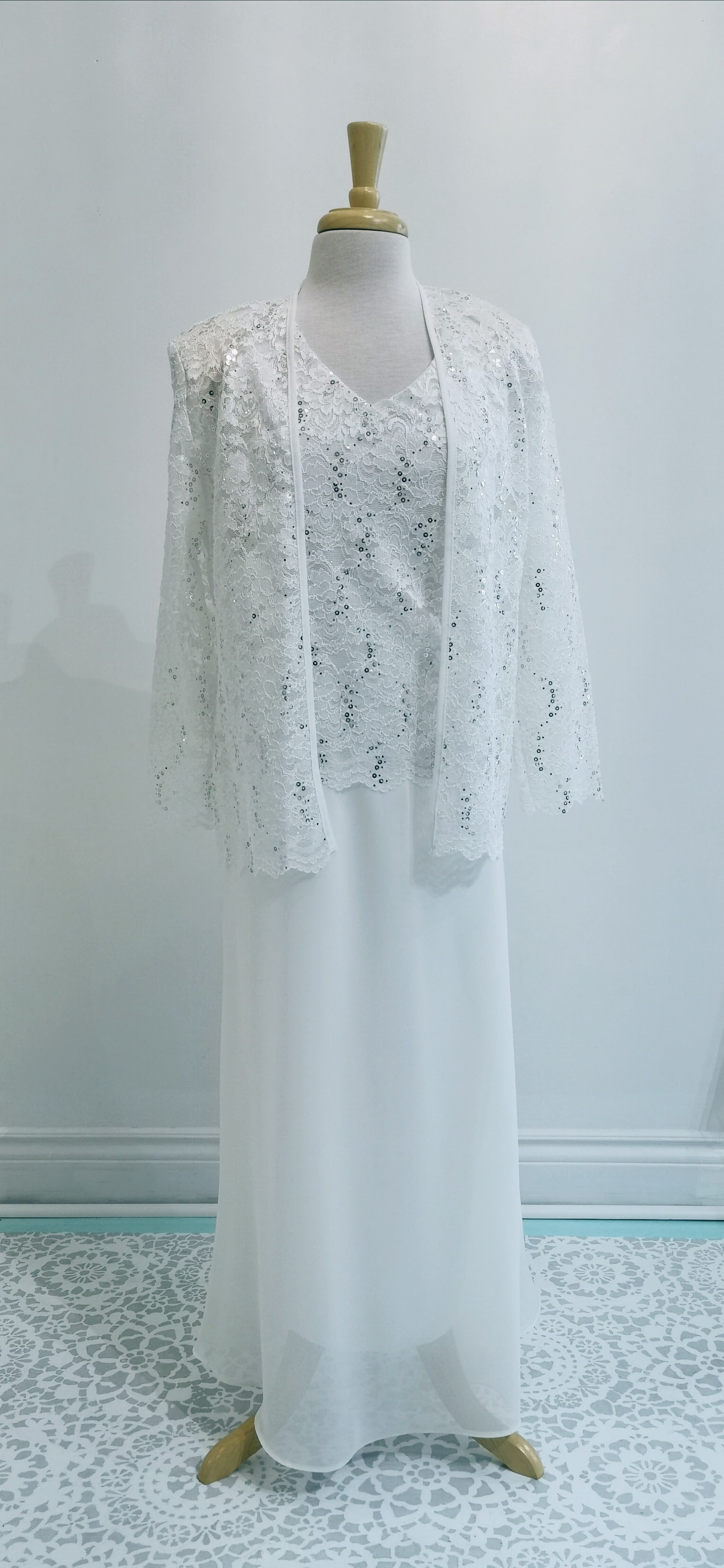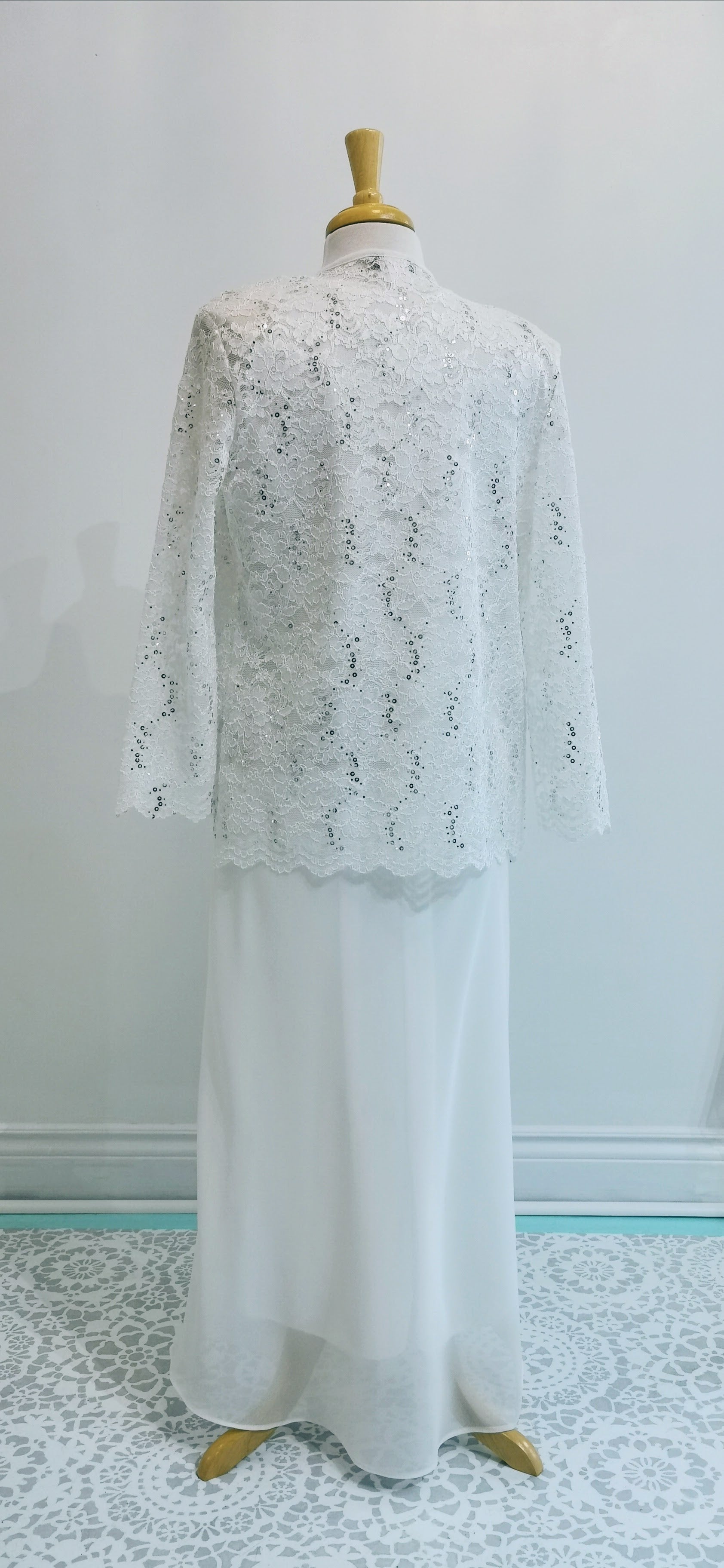 This sophisticated set combines a flowing chiffon maxi dress with a lace top embellished with light sequins for a subtle sparkle. Perfect for formal occasions or celebrations, this set strikes the perfect balance between comfort and glamour.