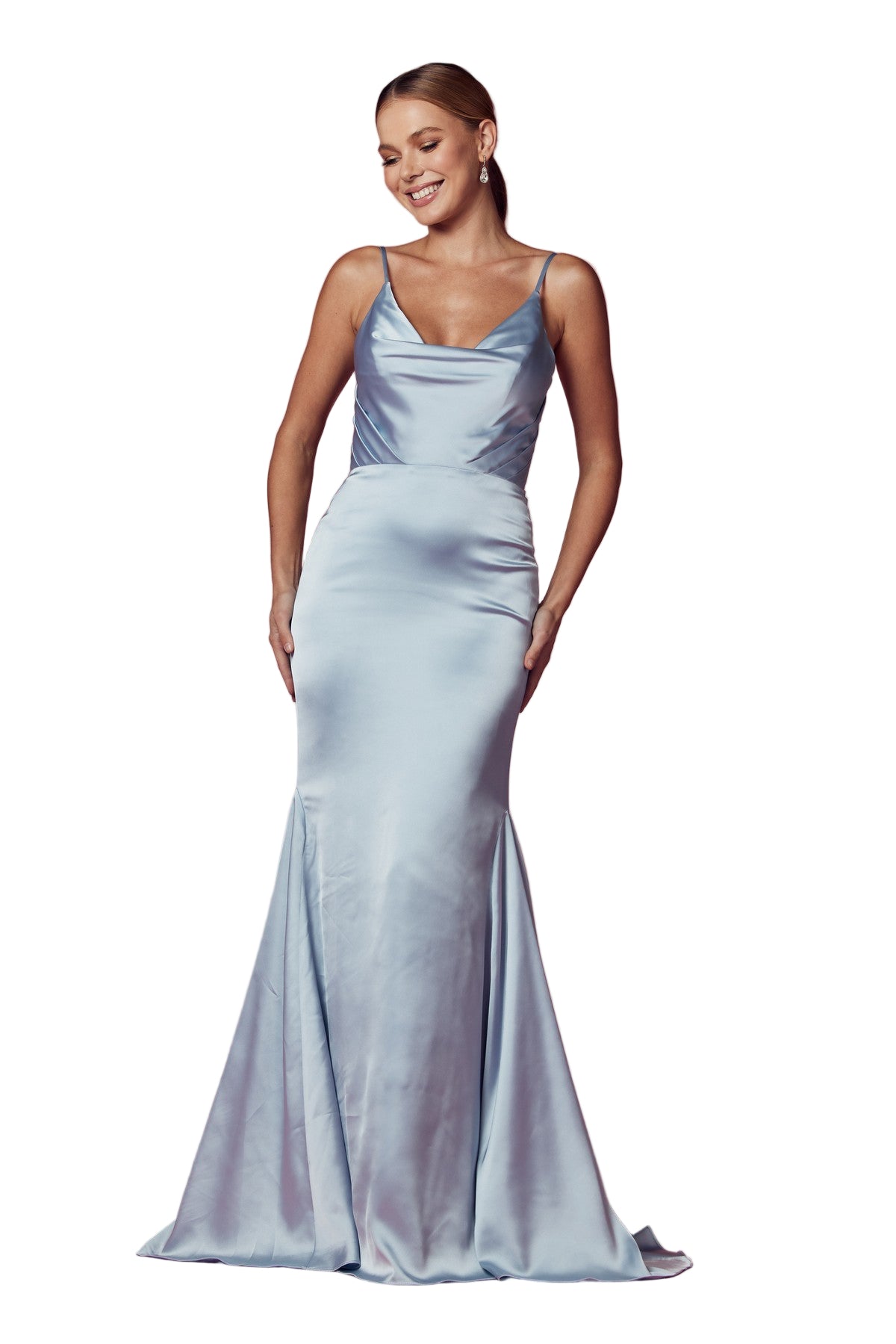 Description: Classic and elegant, this satin and silky dress will go for all your beautiful occasions. With its light pleating at the front and its cowl neckline, it has everything you need to feel effortlessly chic.