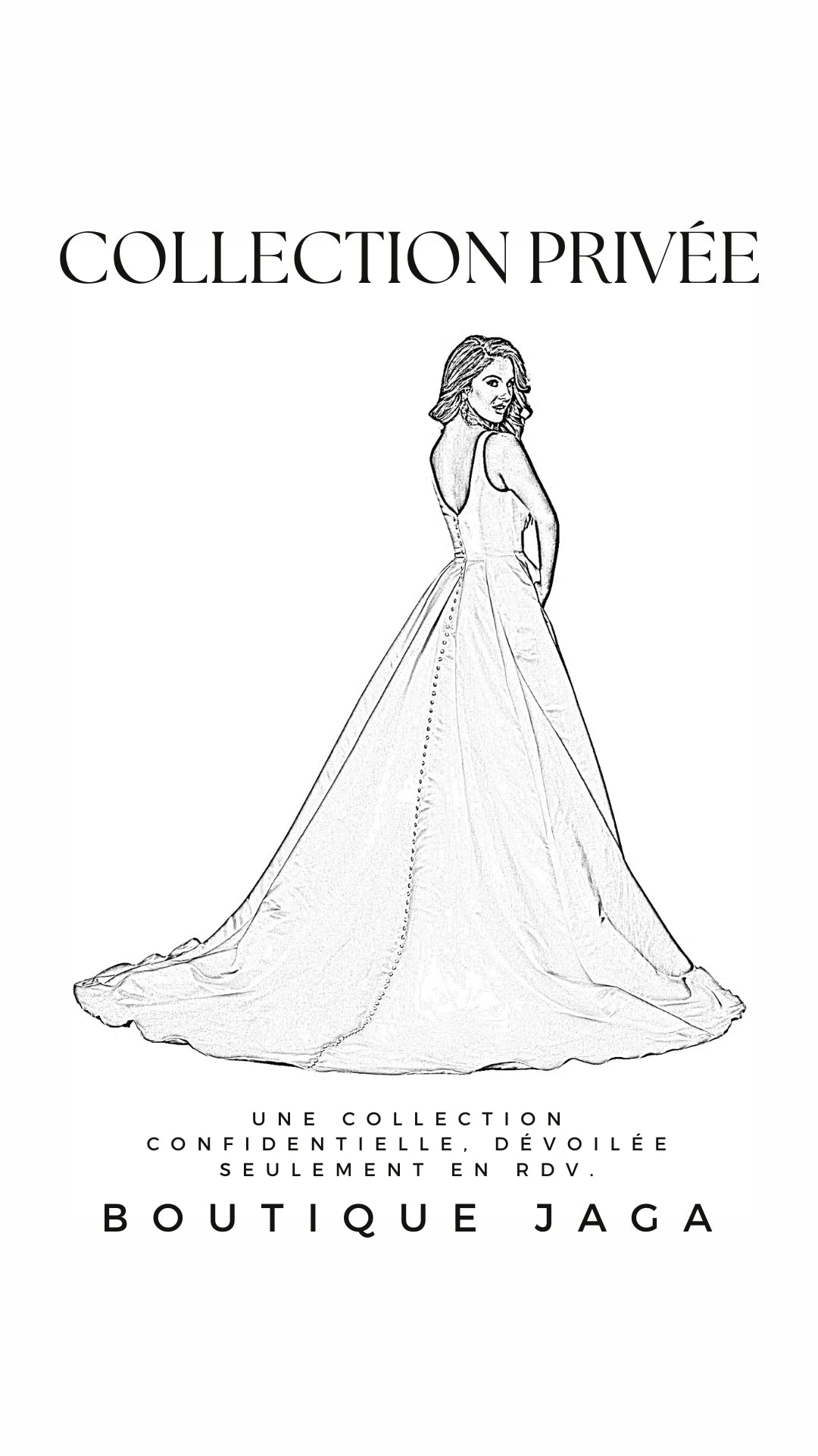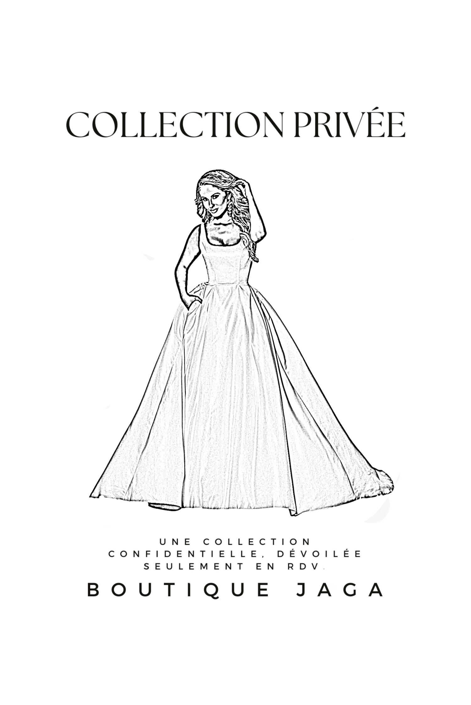 This beautiful satin wedding dress combines simplicity and elegance with a princess cut and a classic neckline. The discreet pockets add a modern and practical touch, while the satin fabric ensures a fluid and sophisticated silhouette. This dress is ideal for the bride who wants a look that is both timeless and modern.