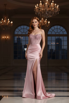 La robe Bridalane BL3015 est un modèle glamour et éclatant qui séduit par son design moderne et scintillant. Son corsage sans bretelles, richement orné de sequins en dégradé, crée un effet lumineux et flatteur sur le buste. La taille marquée met la silhouette en valeur avant de se prolonger dans une jupe satinée au tombé fluide.