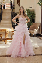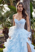 Son corsage bustier au décolleté cœur est sublimé par une transparence délicate et une structure corsetée qui met la taille en valeur. Les appliqués floraux brodés ajoutent une touche romantique raffinée, tandis que la jupe ample à volants superposés en tulle crée un mouvement fluide et spectaculaire à chaque pas. Une robe idéale pour une occasion où l’élégance doit être inoubliable.
