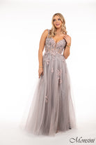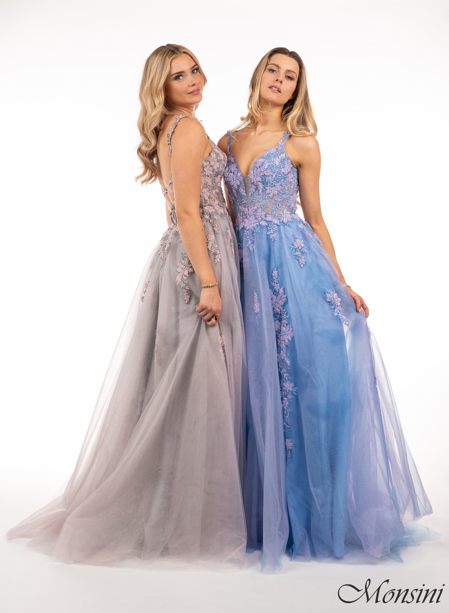 Élégante robe de bal, Marielou de Monsini, est en tulle offrant une allure romantique et raffinée.