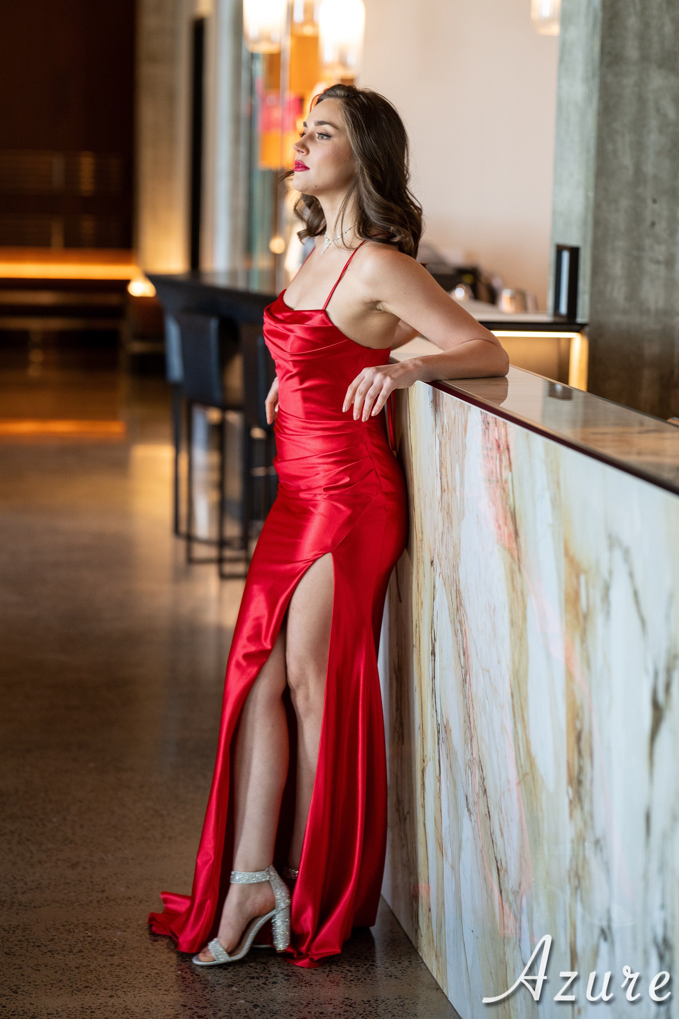 Élégante et sophistiquée, cette robe longue en satin séduit par son tissu fluide et son tombé impeccable. Son encolure drapée et ses fines bretelles ajoutent une touche de délicatesse, tandis que sa fente audacieuse sublime la silhouette en dévoilant juste ce qu’il faut.