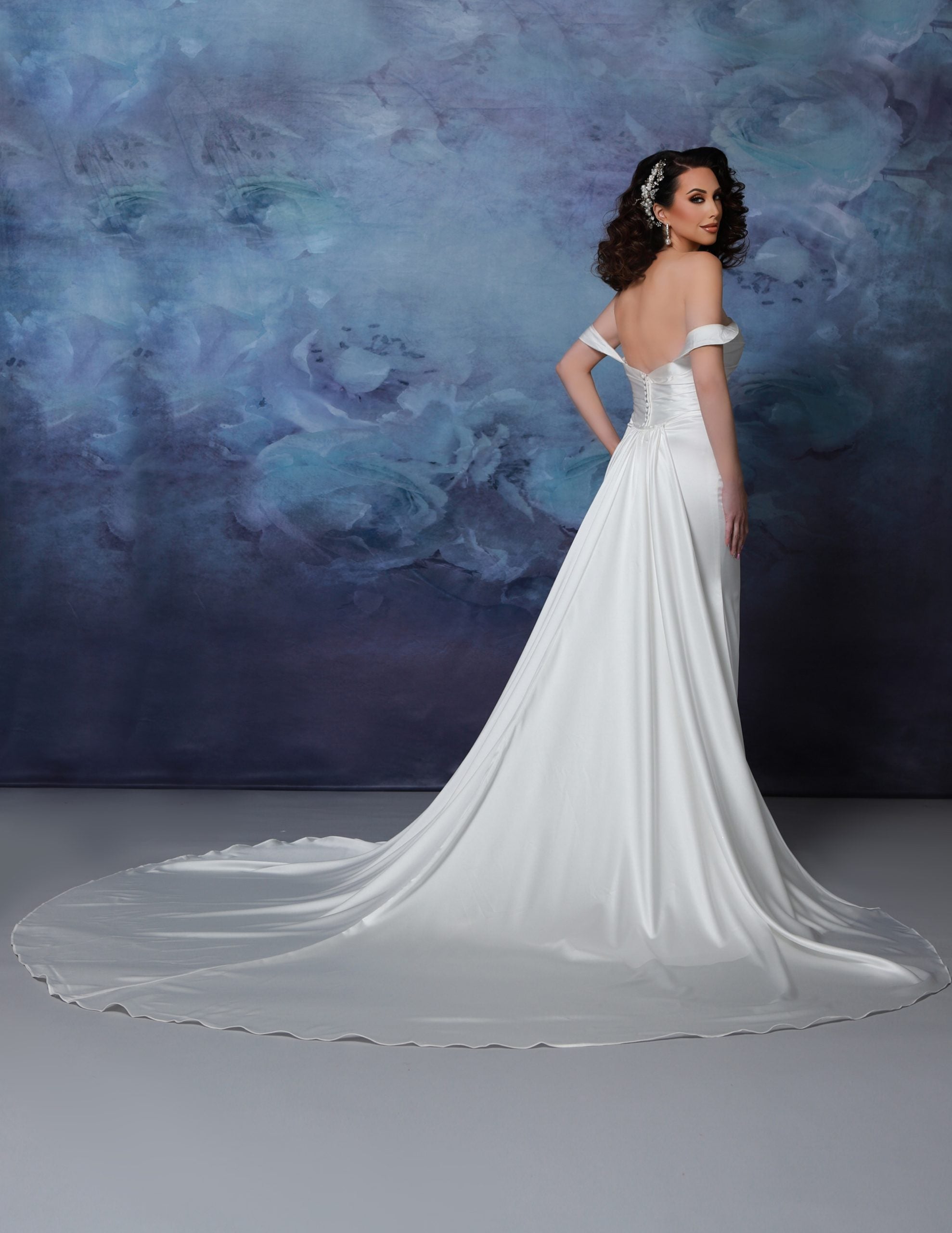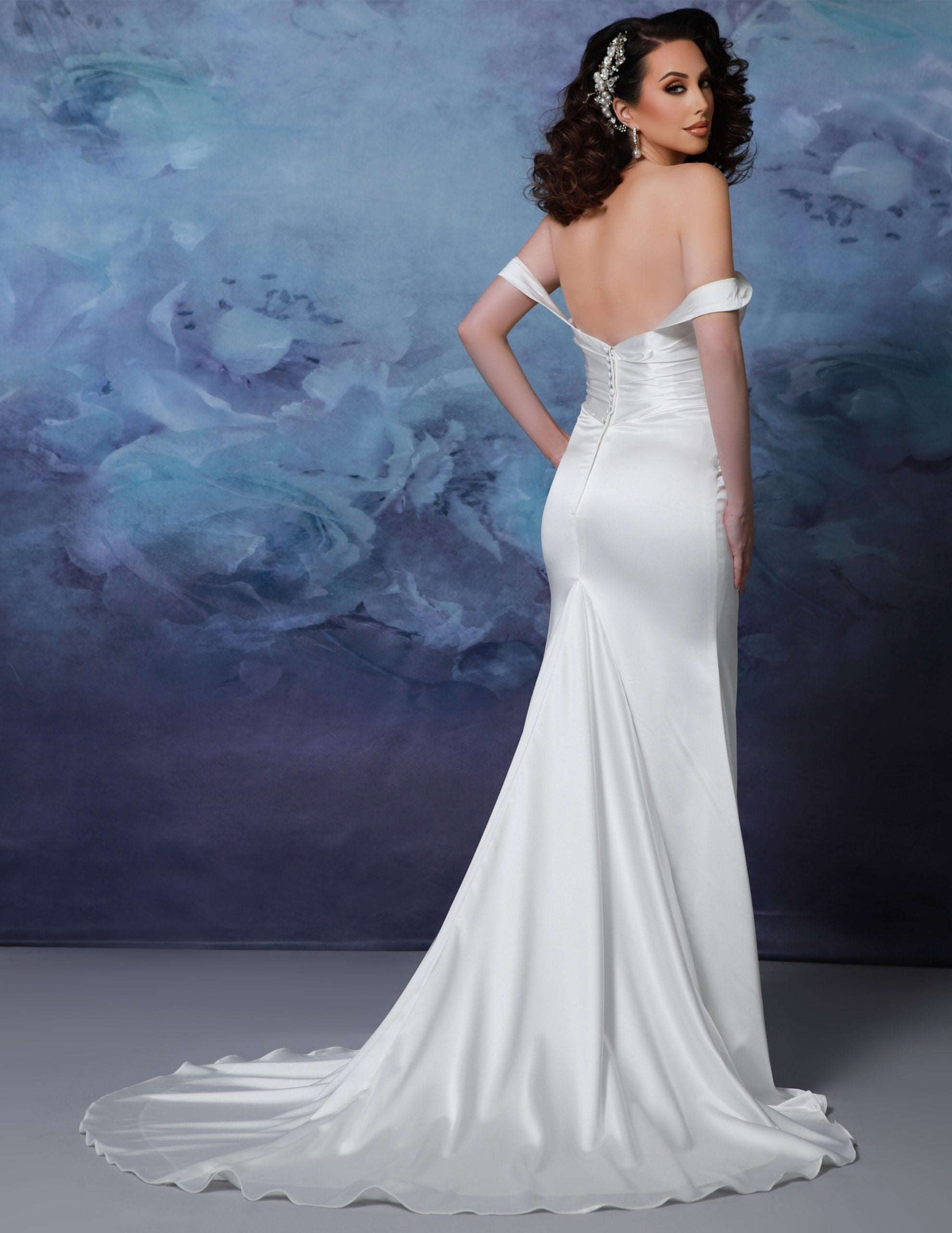 Courtney is the perfect wedding dress for those looking to be sexy and elegant. With its fitted silhouette and satin fabric, it will flatter your figure. The dropped straps add a touch of sophistication and the detachable train offers flexibility for the ceremony and reception. Be the star of your wedding with Courtney.