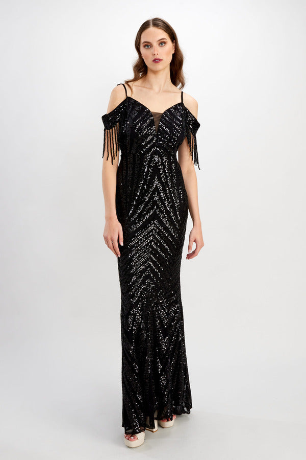 Treat yourself to a refined look with our Emmanuelle dress. Inspired by the Roaring Twenties, it is both elegant and vintage. Its shine and shoulder decoration add a luxurious touch to your outfit. Perfect for special occasions, this dress will be your ally for all your sophisticated evenings.