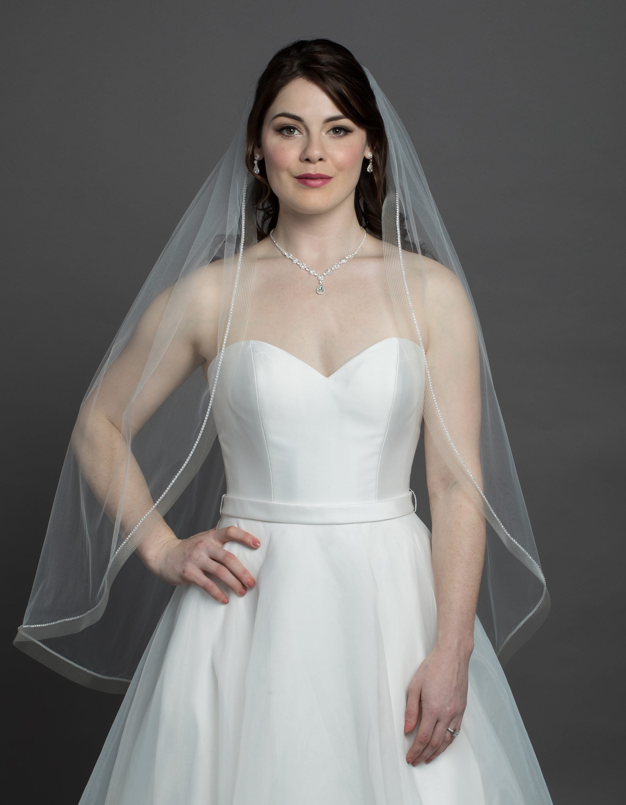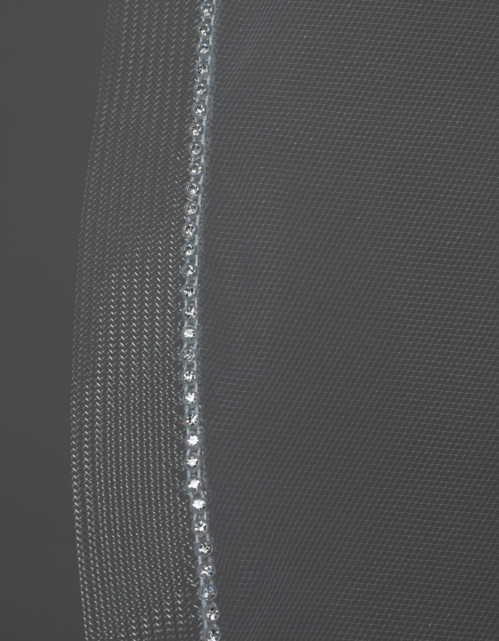 Style Tip : This shimmering edge veil is perfect for brides looking for a simple yet elegant accessory. Pair it with a minimalist wedding dress to highlight the details of the outfit or with an embellished gown for a glamorous and harmonious ensemble.