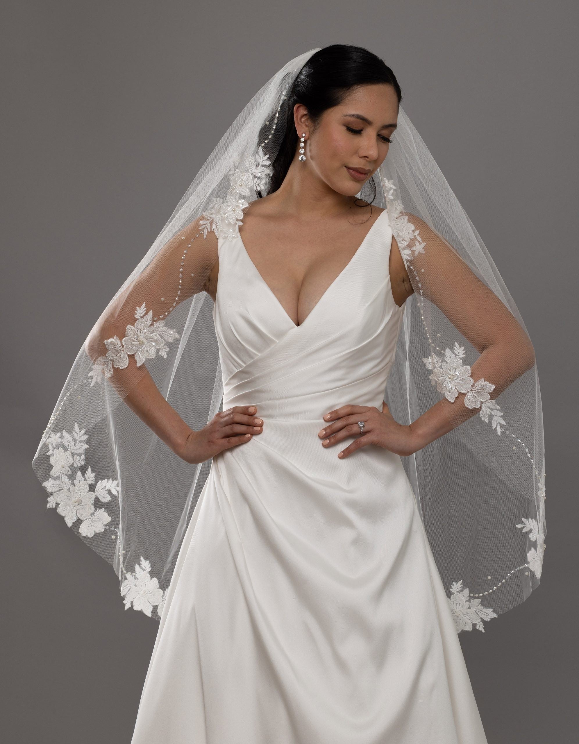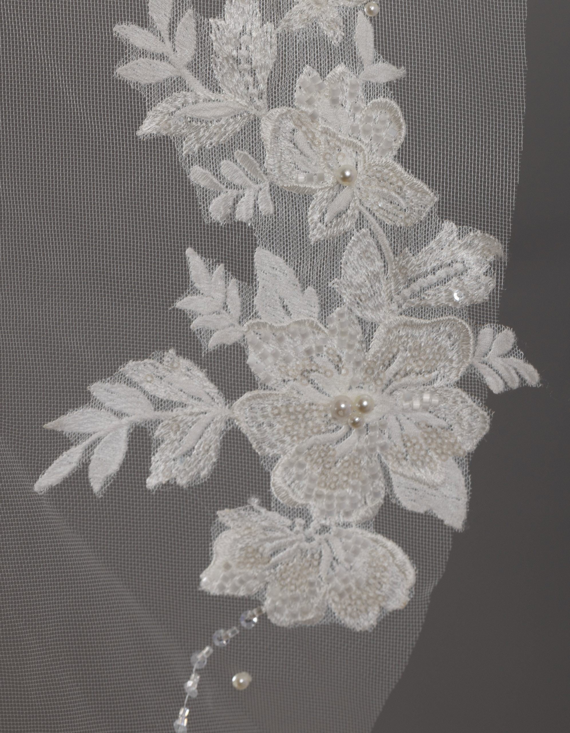 Voile mi-long appliqué floral et perles