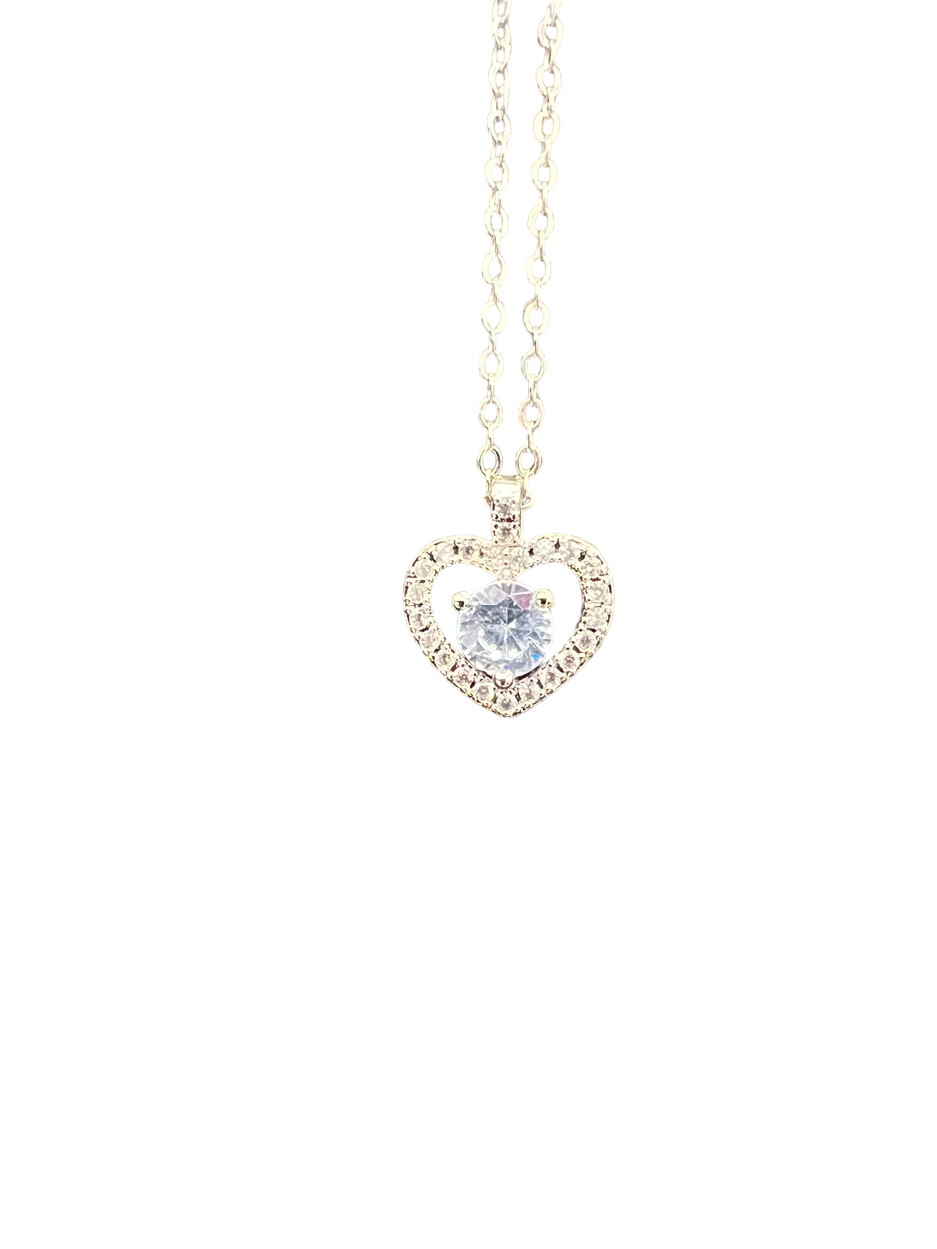 This heart pendant is made with a silver chain and a heart-shaped pendant adorned with a sparkling faux diamond in the middle. An elegant piece that will add a luxurious touch to your look. A sophisticated choice for a refined and exclusive look.