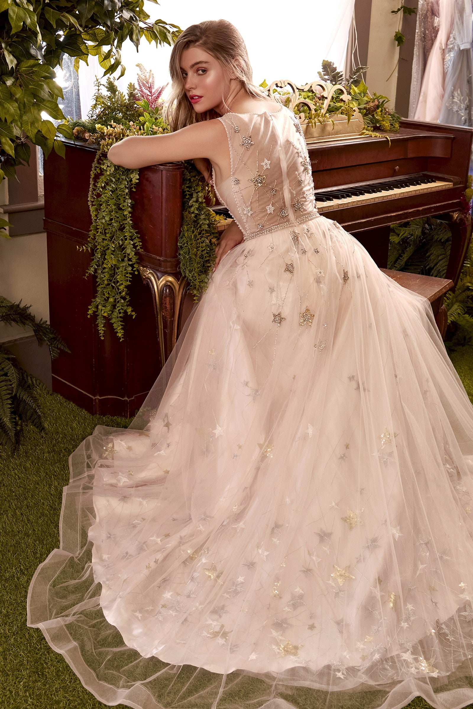 Descripción: Este vestido es tan celestial que las estrellas bordadas y la elegante abertura en la falda hacen que al principio sea fácil de poner, pero también tiene ese "poquito de picante" que a todas nos encanta ser la reina del baile.