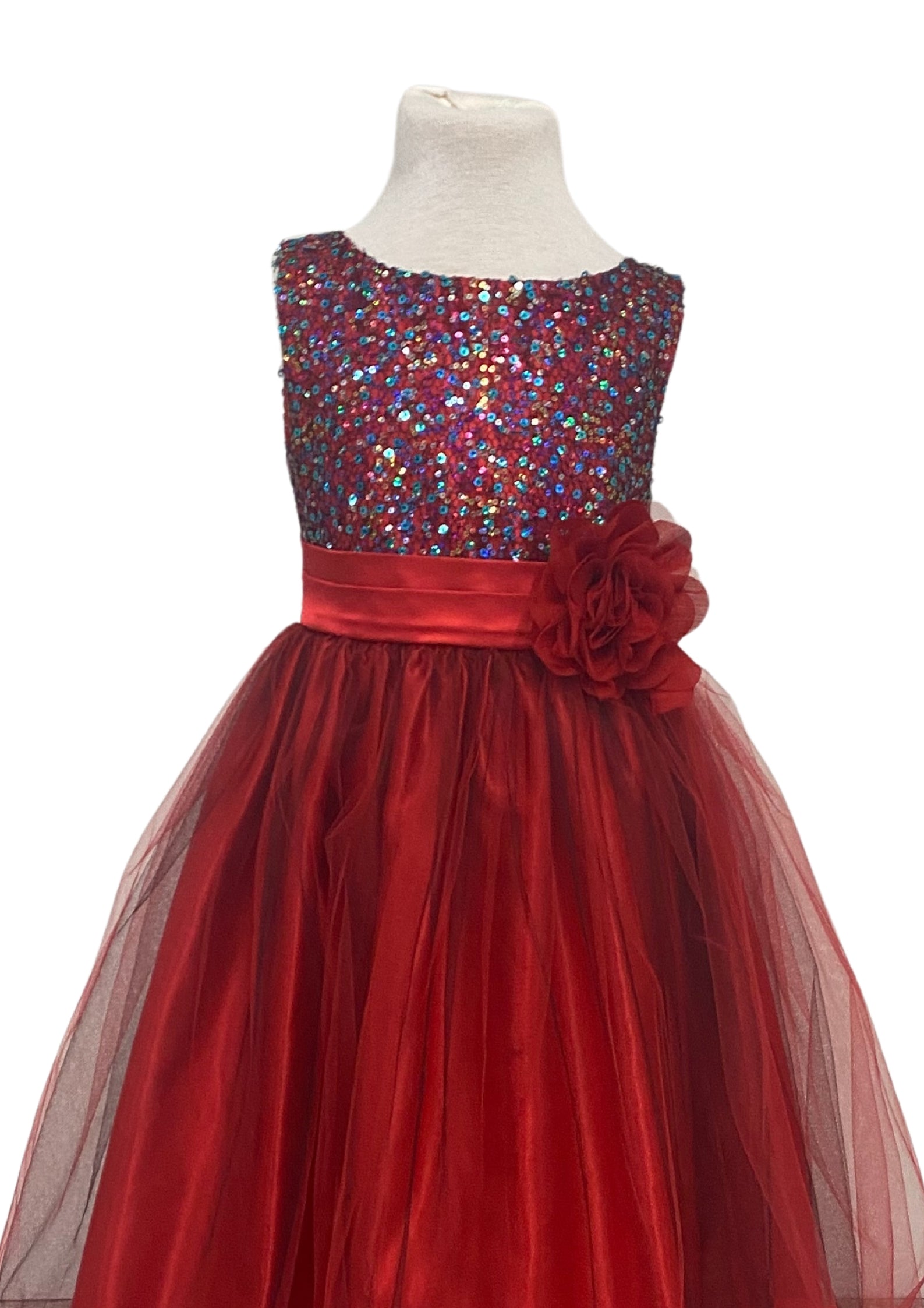 Vestido de niña de tul rojo con cuerpo de lentejuelas