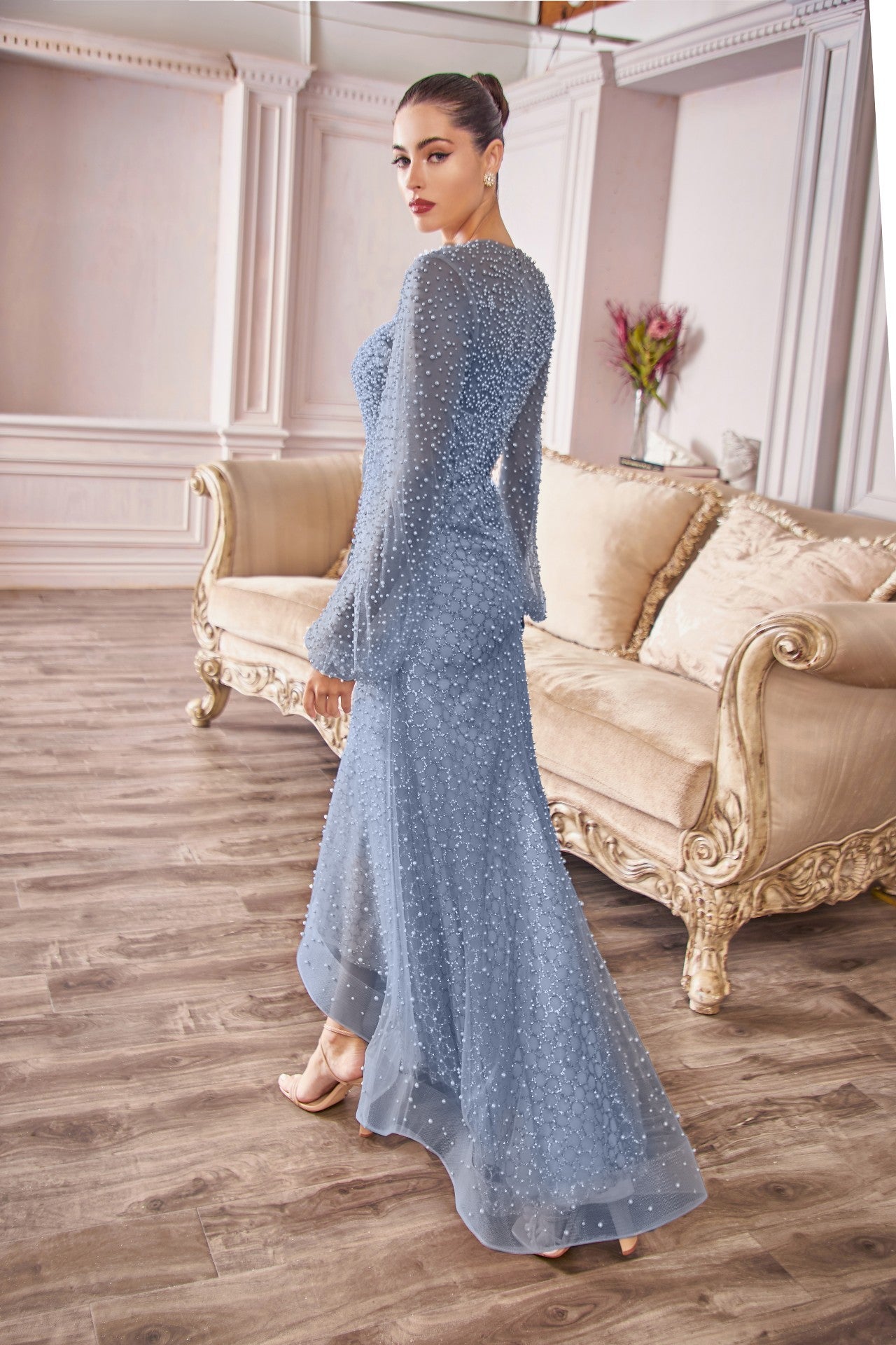 Descripción: Alcanza el siguiente nivel de elegancia en este Andrea y Leo. Este vestido presenta escote barco y manga larga transparente. Es un vestido con corpiño ajustado y con incrustaciones de perlas por todas partes. La falda ligeramente más corta hace que tu andar sea muy elegante. Este vestido te da un look sofisticado pero seductor. La parte trasera se cierra con cremallera para mayor seguridad. Este impresionante vestido de Andrea y Leo es encantador y versátil, perfecto para eventos de alfombra roja, galas sociales, bodas y graduaciones.