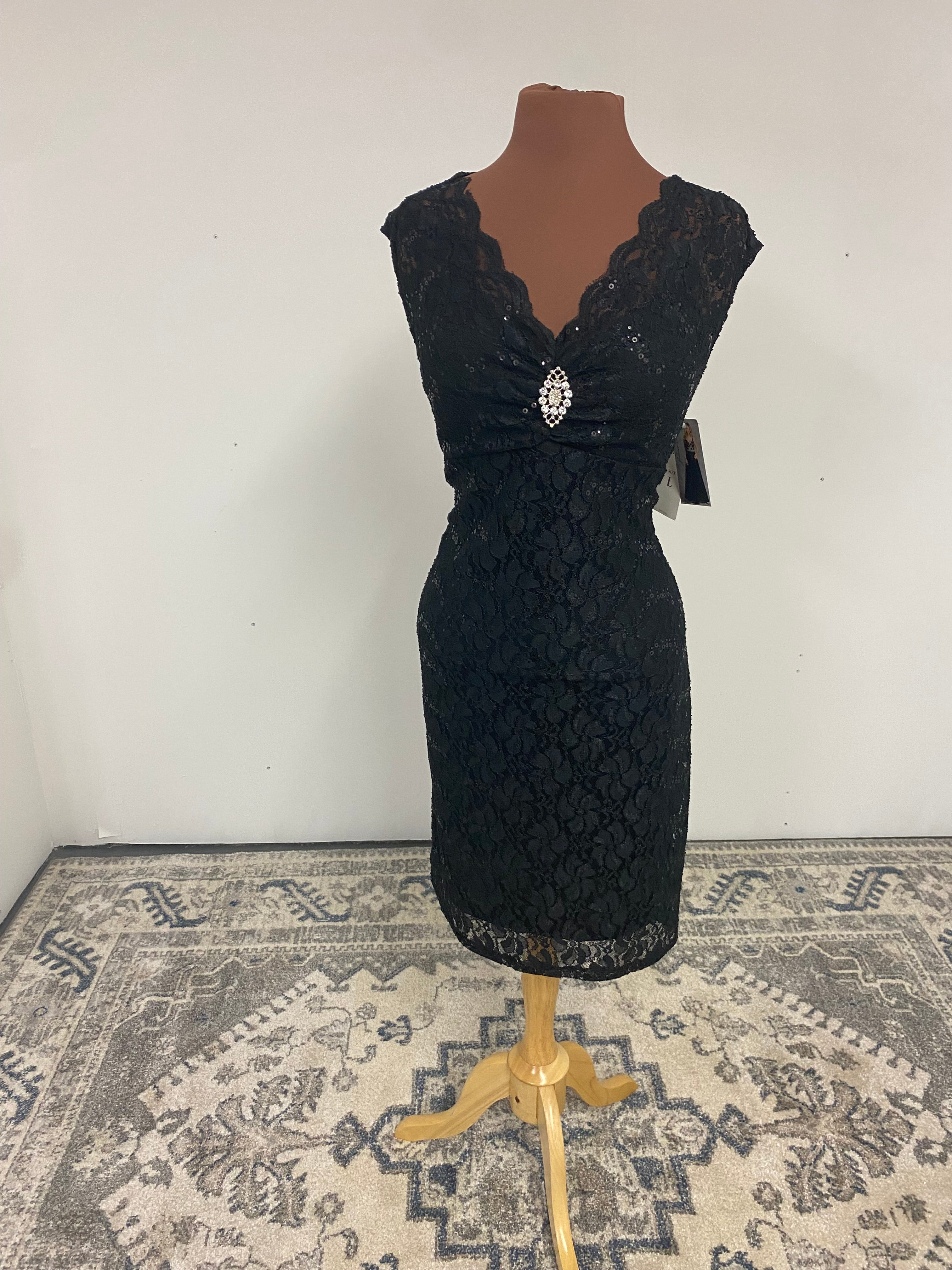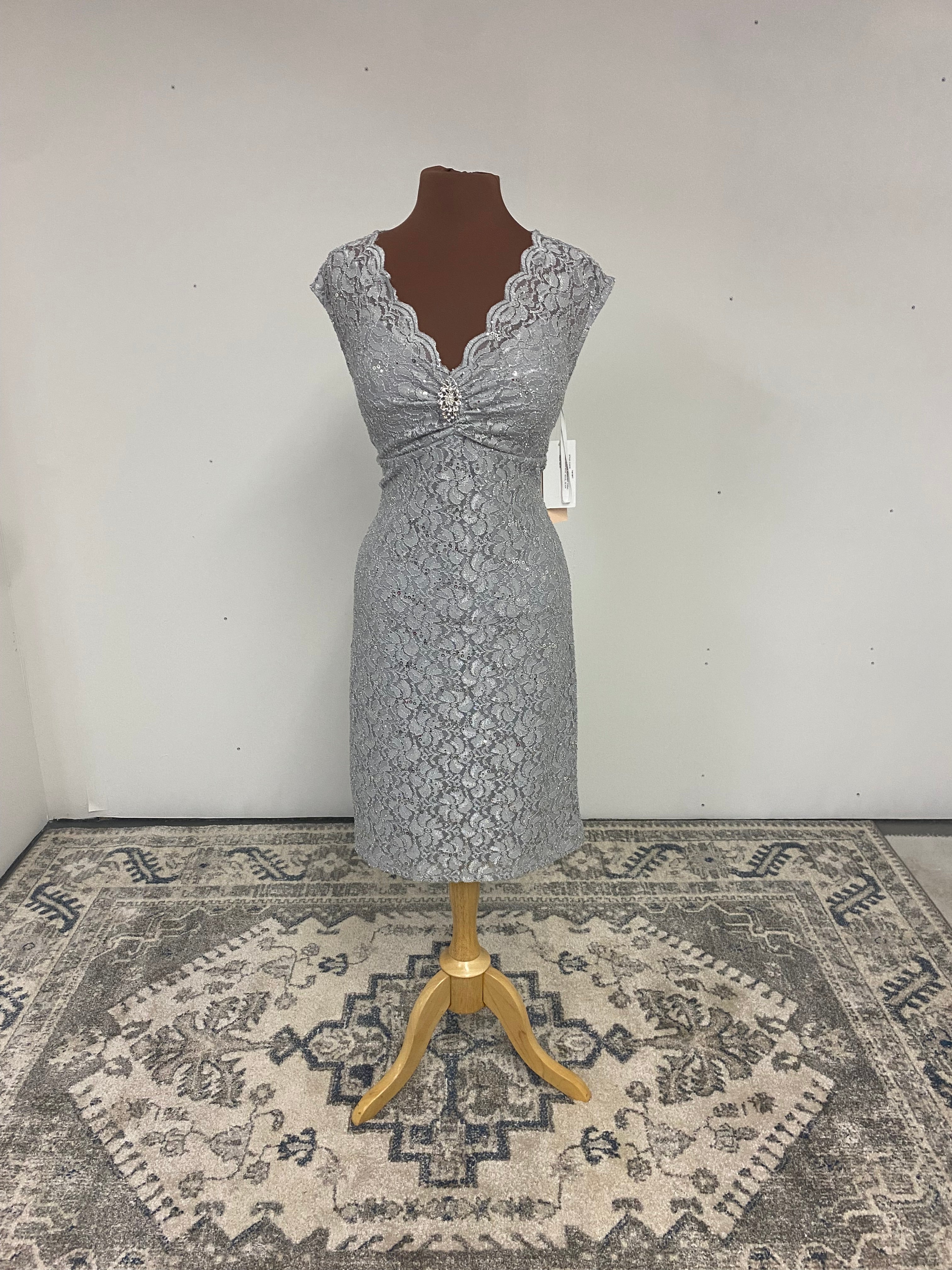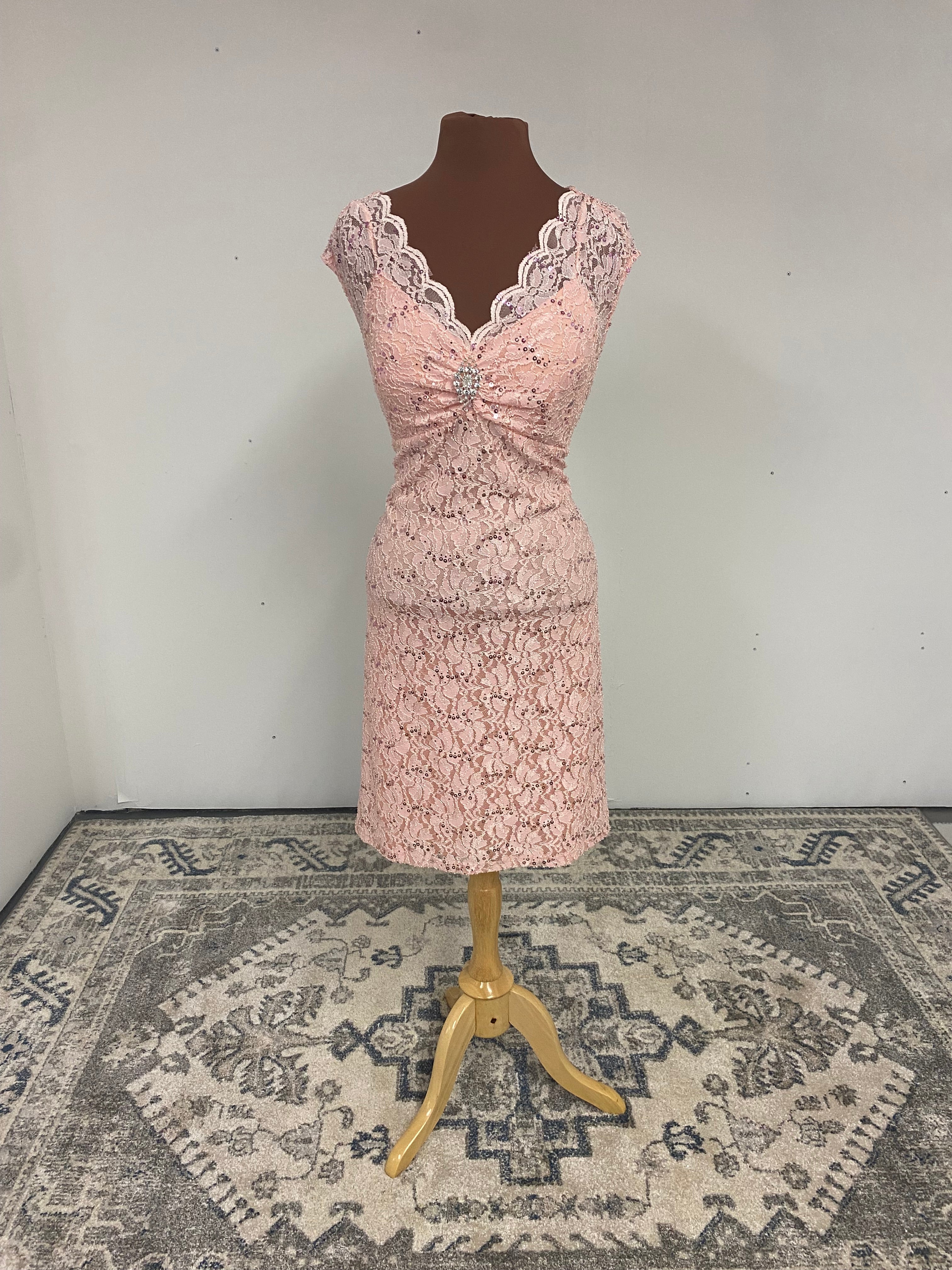 Descripciones: Descubre nuestro vestido corto de encaje con lentejuelas brillantes para un look exclusivo y sofisticado. Adornado con un broche de strass entre el pecho y con la espalda semiabierta, este vestido te aportará un encanto irresistible durante tus veladas más elegantes. Hazte notar con nuestro vestido CL6235.