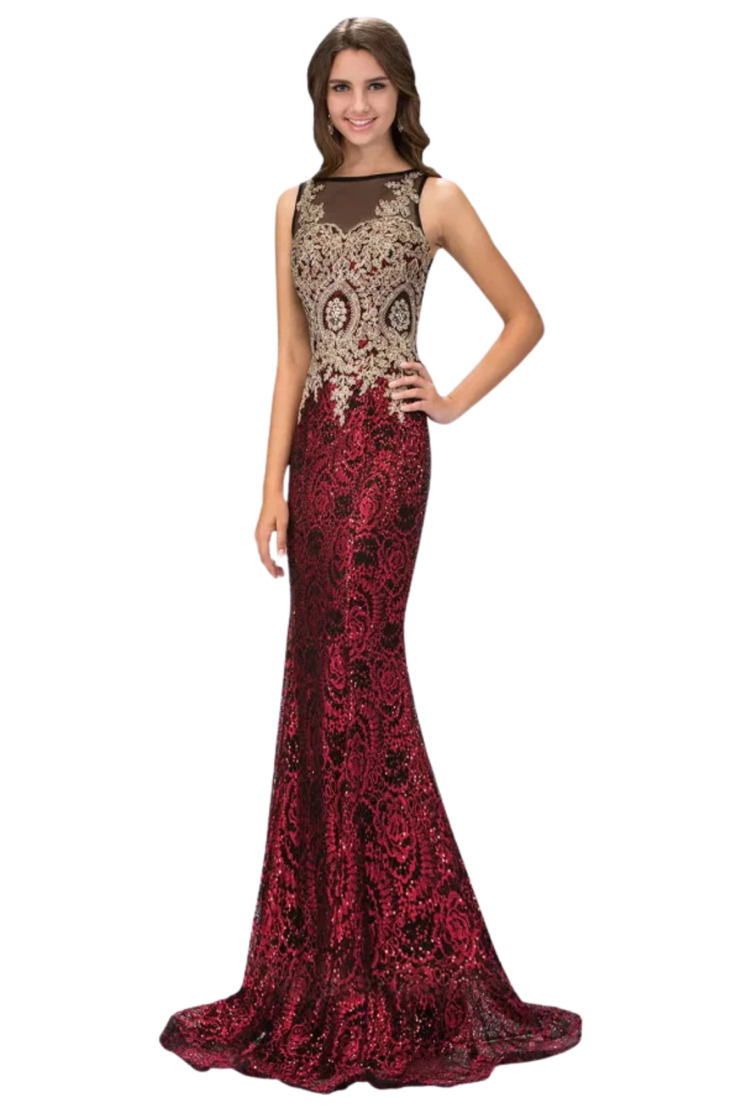 - Tejido : Encaje decorado con lentejuelas con bordado dorado.