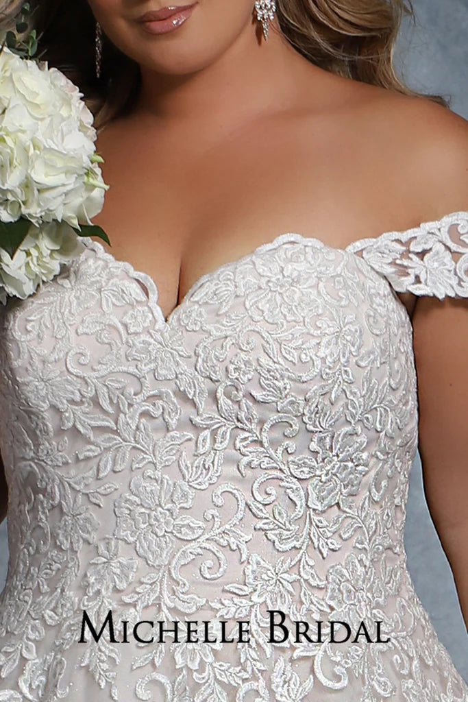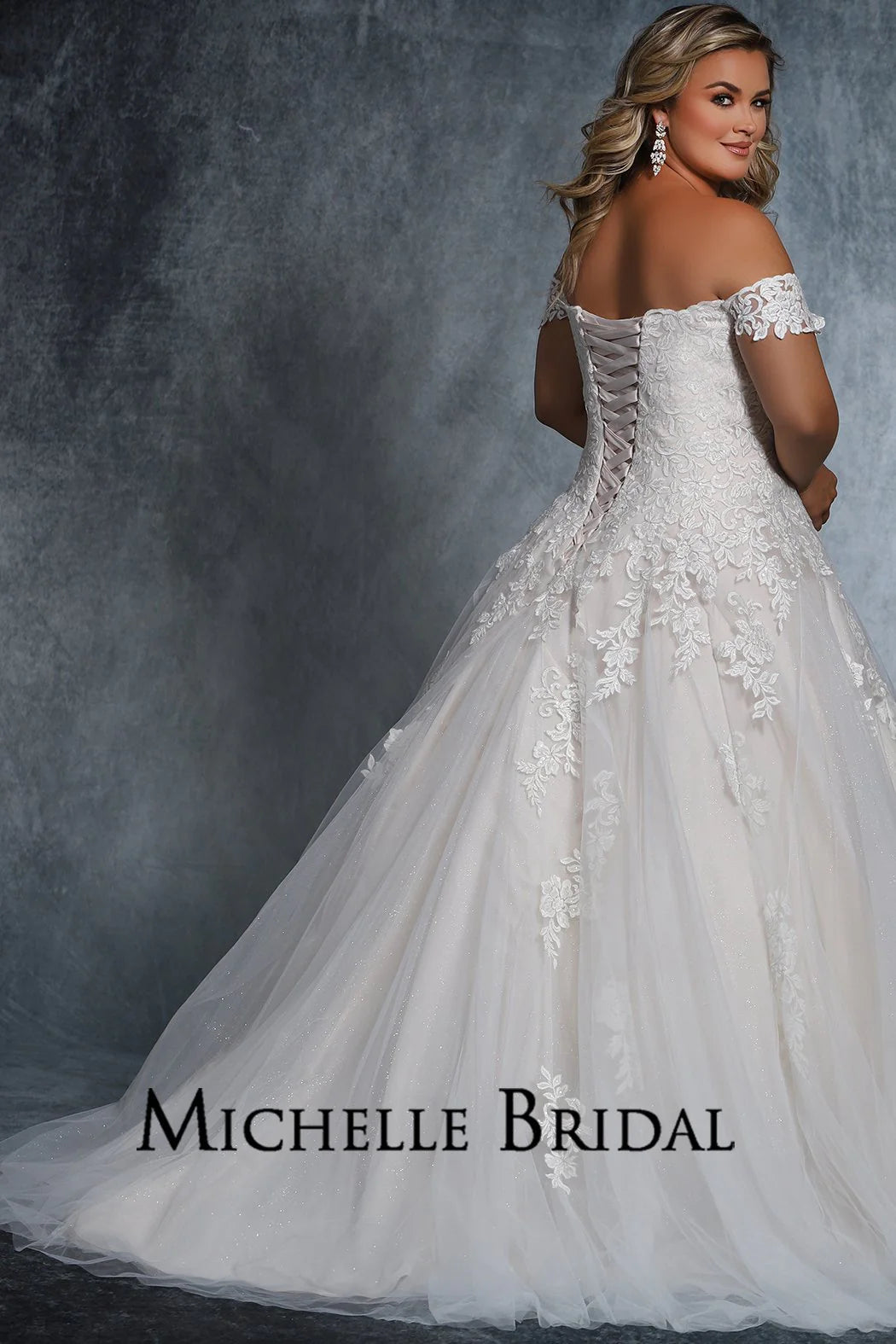 Descripción: Novias de talla grande, disfruten de un suntuoso vestido de princesa y sean la encarnación de la feminidad divina. El vestido Faith tiene cordones en la espalda y está adornado con delicadas mangas de encaje que caen con gracia. Un toque de glamour y elegancia a la altura.