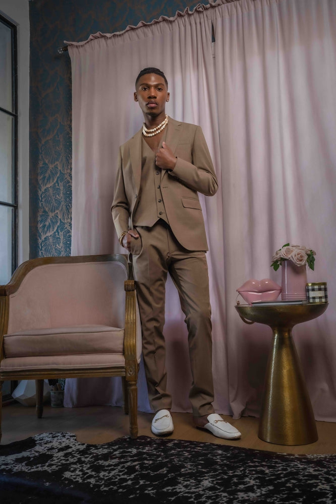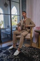 Ce costume raffiné est confectionné en coton égyptien, une matière reconnue pour sa douceur exceptionnelle, sa légèreté et sa résistance. Sa coupe moderne et ajustée met en valeur la silhouette tout en offrant un confort supérieur grâce à la respirabilité du tissu. La veste élégante s’accompagne d’un gilet ton sur ton et d’un pantalon fuselé, parfaits pour un style sophistiqué et intemporel.