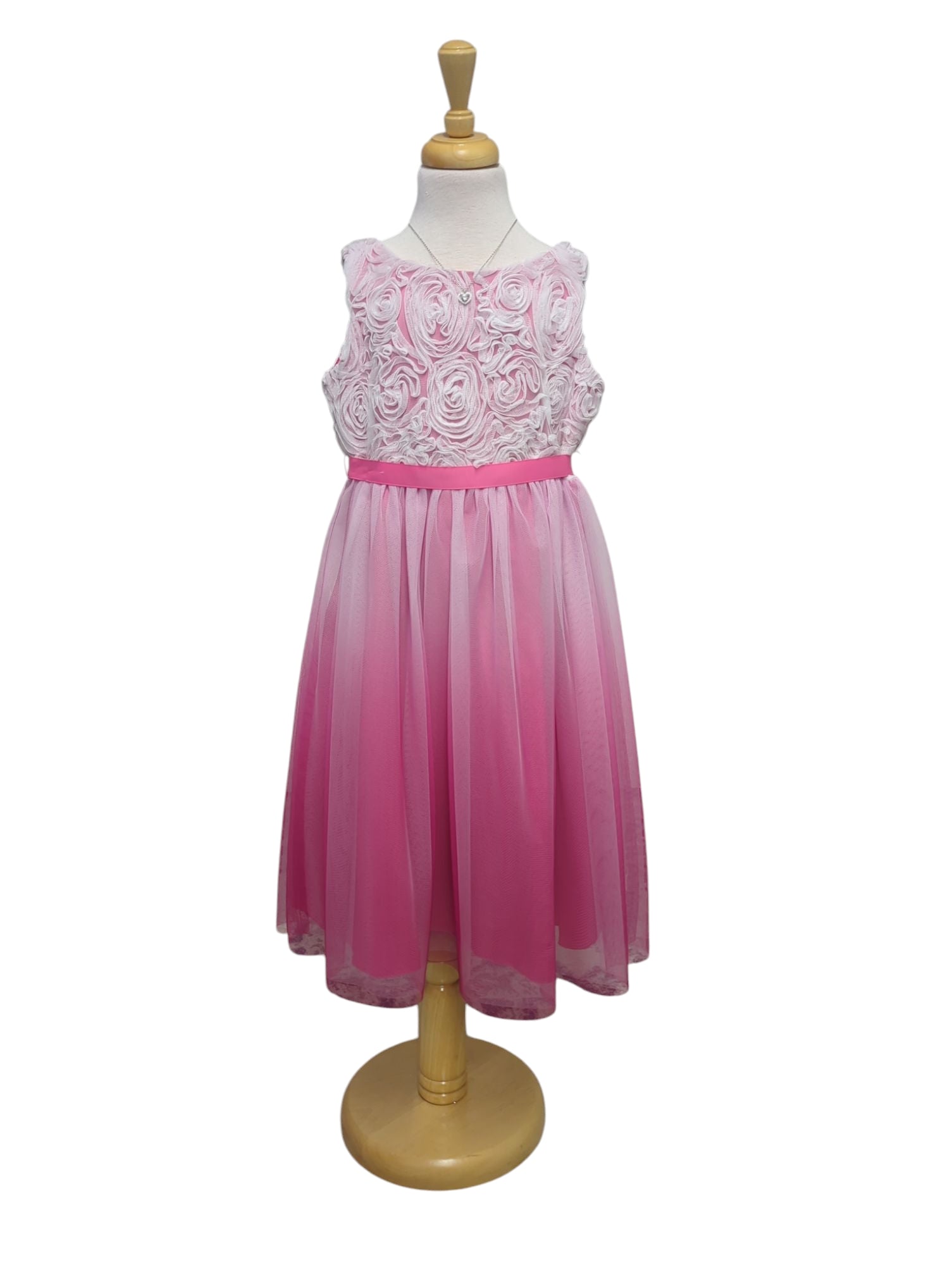 Robe de Cérémonie Dégradée Rose avec Haut Rosacé