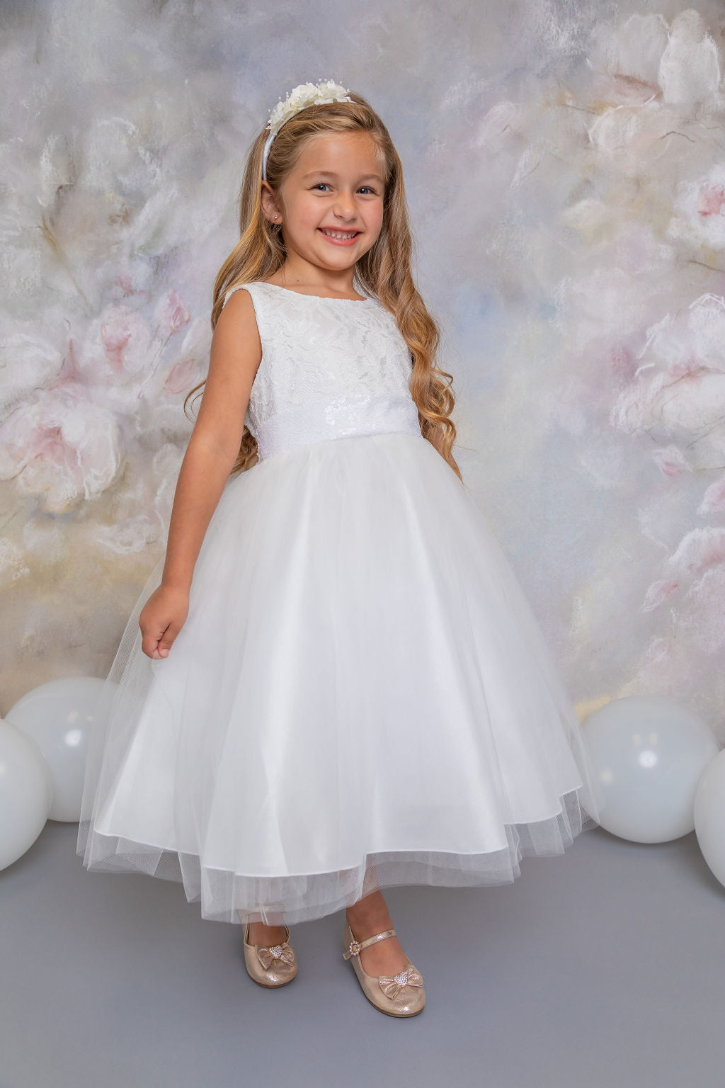 La robe 522 incarne la grâce et l’élégance avec son haut en dentelle délicate et sa jupe en tulle vaporeux. Son style raffiné est parfait pour les filles d’honneur, les communions ou toute cérémonie formelle. Le dos est subtilement cintré avec une taille marquée pour une silhouette douce et harmonieuse.