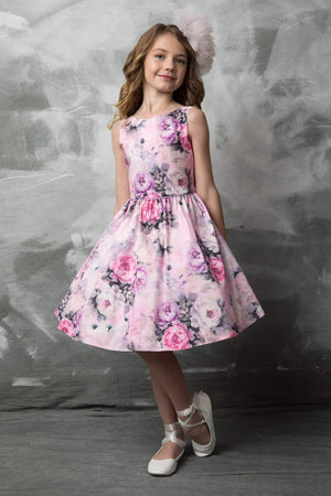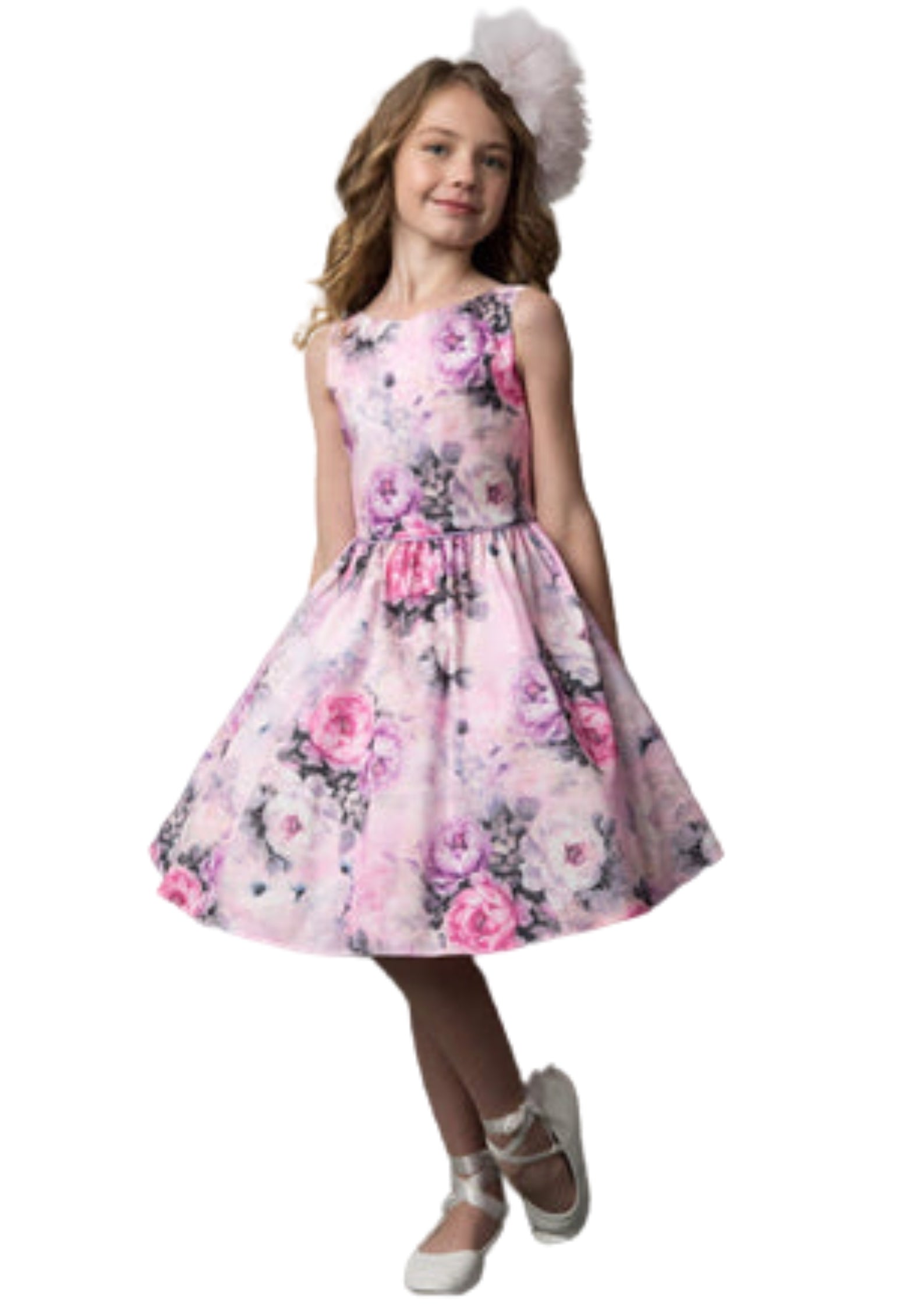 La robe 283T est une véritable explosion de douceur avec ses magnifiques imprimés floraux dans les tons lilas et roses. Confectionnée dans un tissu satiné léger, elle offre une coupe évasée à la jupe et un haut sans manches, parfait pour les journées ensoleillées et les événements printaniers.