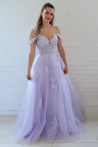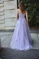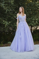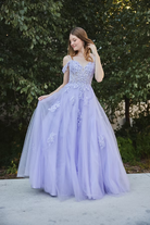 La jupe en tulle léger s’évase gracieusement, offrant un volume aérien et une allure de princesse tout en conservant une fluidité naturelle. Sa teinte lavande apporte une aura lumineuse et rêveuse, idéale pour celles qui souhaitent une robe douce, féminine et inoubliable.