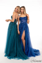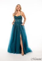 Robe de soirée bustier à sequins et fente – Bleu roi ou Vert émeraude