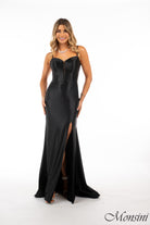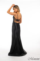 La robe Medida de Monsini allie allure sophistiquée et détails sensuels. Confectionnée dans un tissu légèrement scintillant, elle présente un bustier ajusté avec encolure subtilement décolletée et une fente haute qui allonge la silhouette. À l’arrière, un dos ouvert orné de lanières croisées et d’un laçage raffiné apporte une touche audacieuse et glamour. Sa coupe longue sirène épouse les formes et se termine par une traîne fluide.