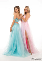 Le dos ajouré ajoute une touche séduisante, tandis que la jupe longue en tulle pailleté offre un mouvement fluide et aérien. Une fente subtile complète le design pour une élégance moderne et féminine.